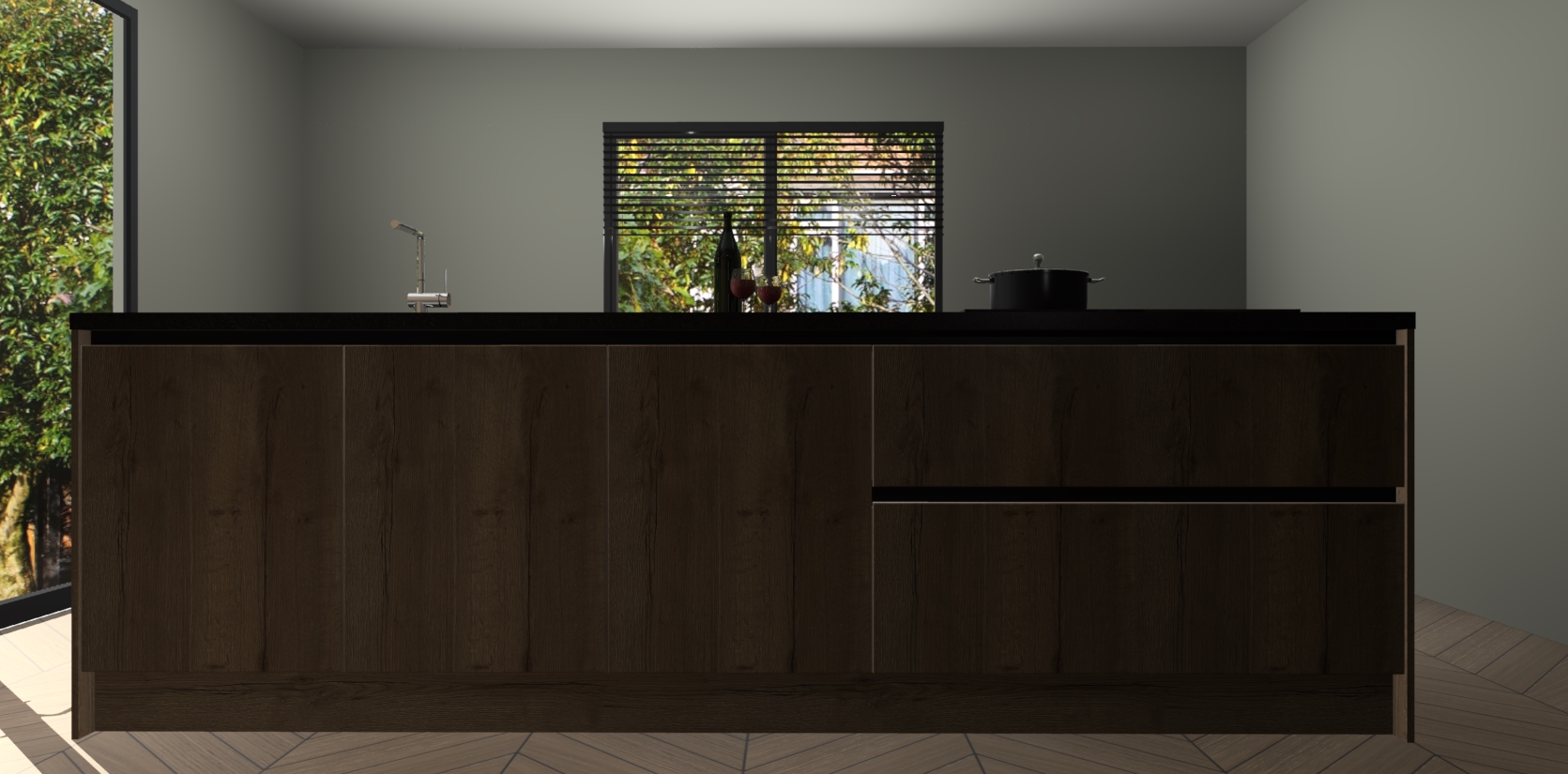 Sfeervol luxe met de Chocolade Eiken greeploze keuken Lodz! Reken op een moderne look die met zijn schitterende Chocolade Eiken kleur en het prachtige keukeneiland echt zal schitteren in uw keuken. Met veel verschillende berging opties zult u alles kunnen opbergen wat u nodig heeft in deze hoopvolle ruimte, waaronder ook soft-close vergrendeling.