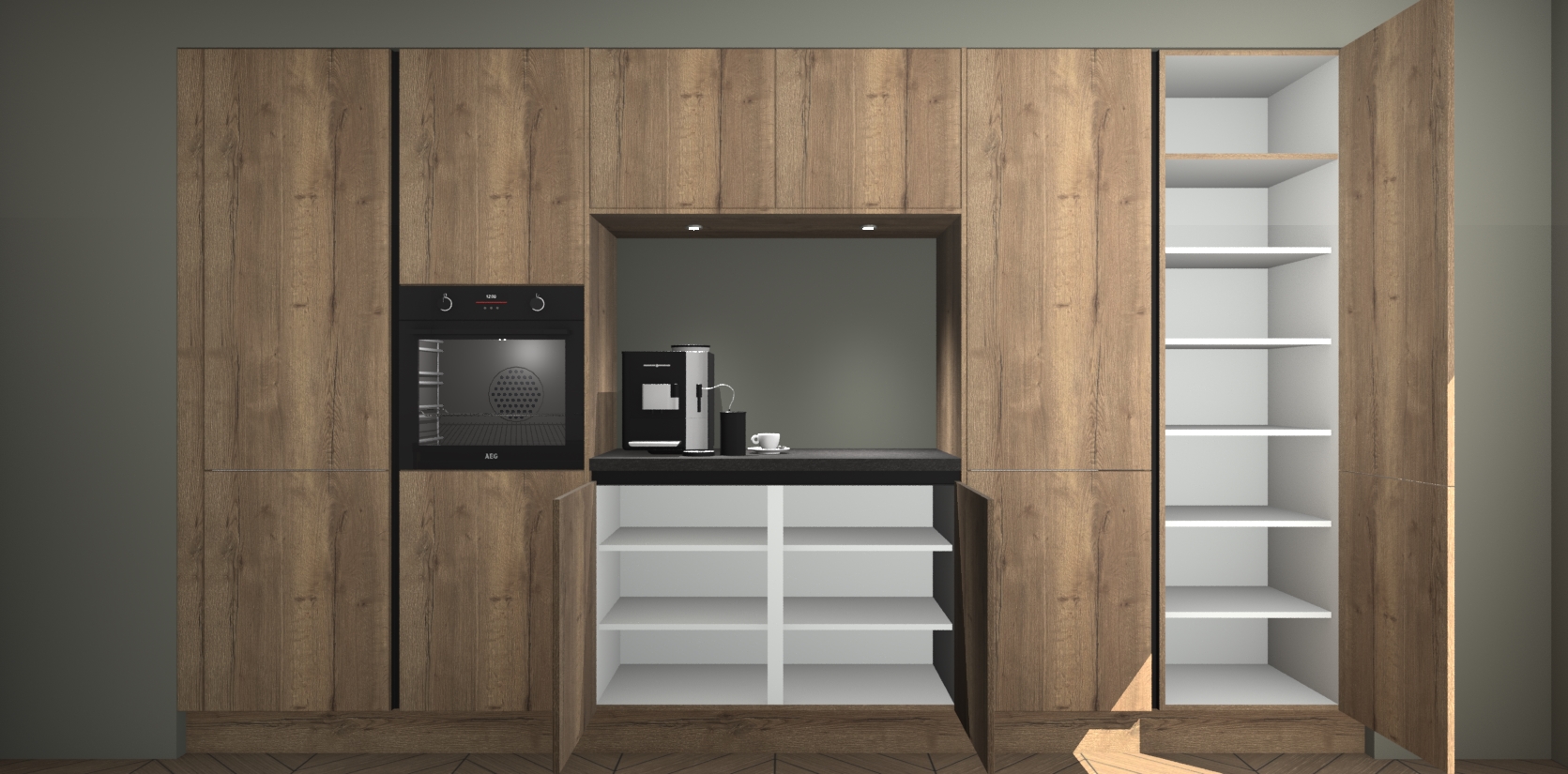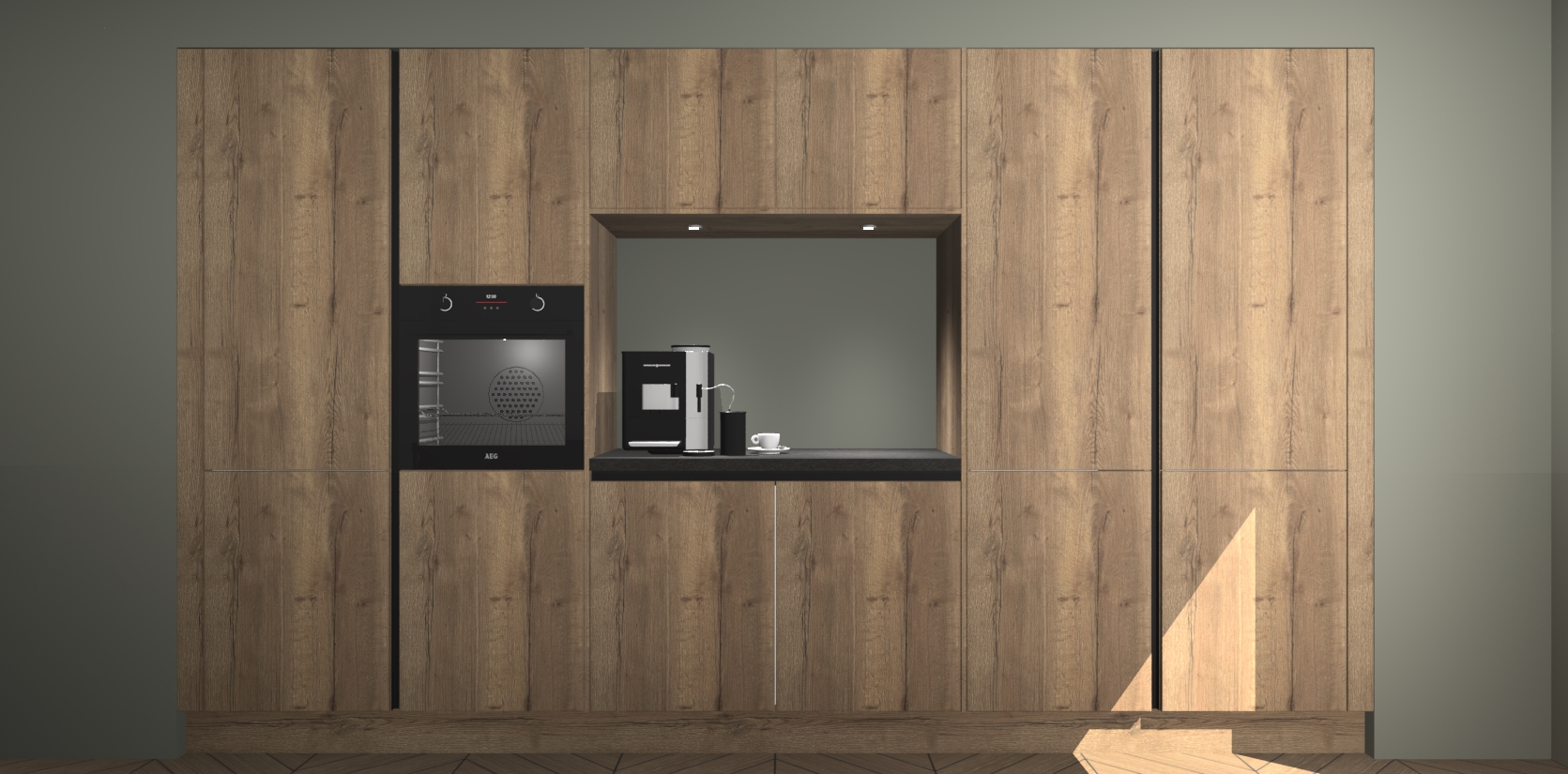 De Chocolade Eiken greeploze keuken Lodz wordt geleverd met een set van 5 ingebouwde apparaten: Een oven, inductiekookplaat, afzuigkap, vaatwasser en koelkast. Deze kunnen gemakkelijk worden opgewaardeerd naar AEG. Met de gegarandeerde lage prijs en de snelle levering van 7 weken kan u er op rekenen dat de Chocolade Eiken greeploze keuken Lodz zo snel mogelijk uw huis bereikt!