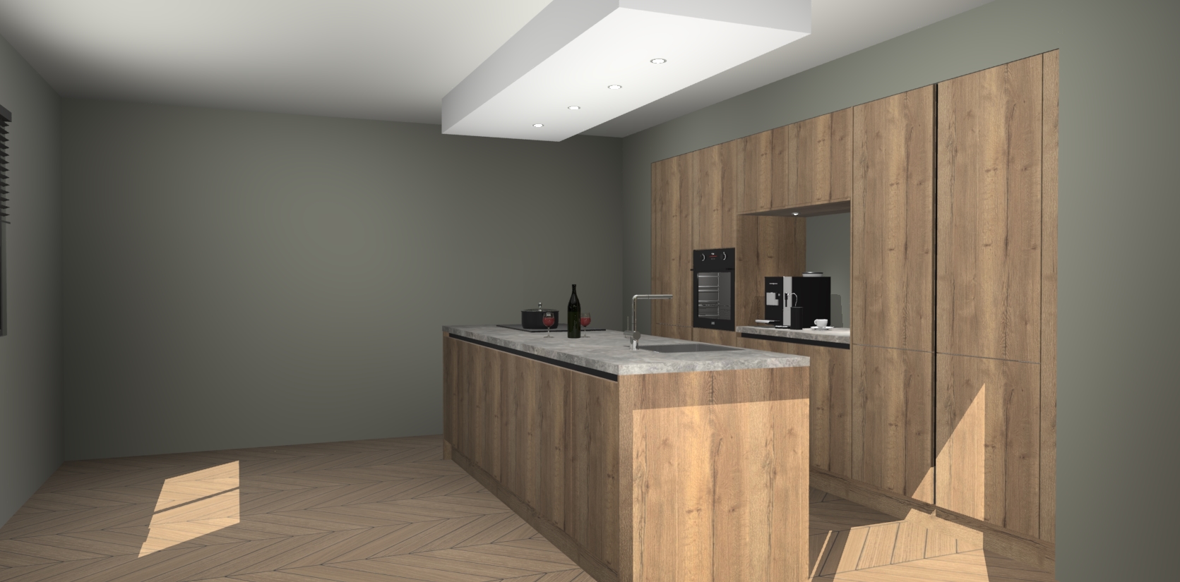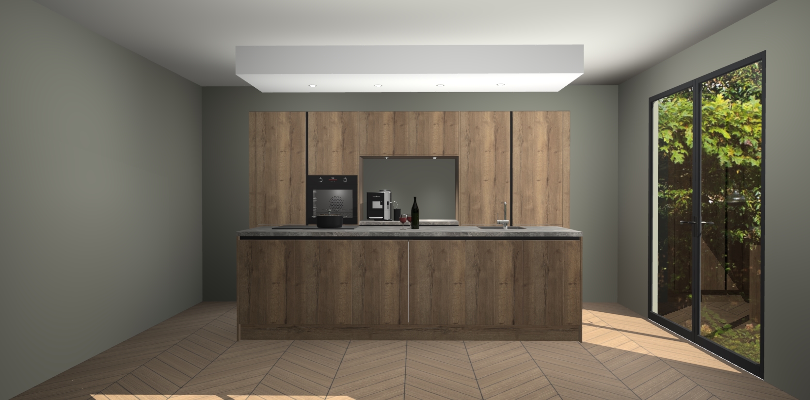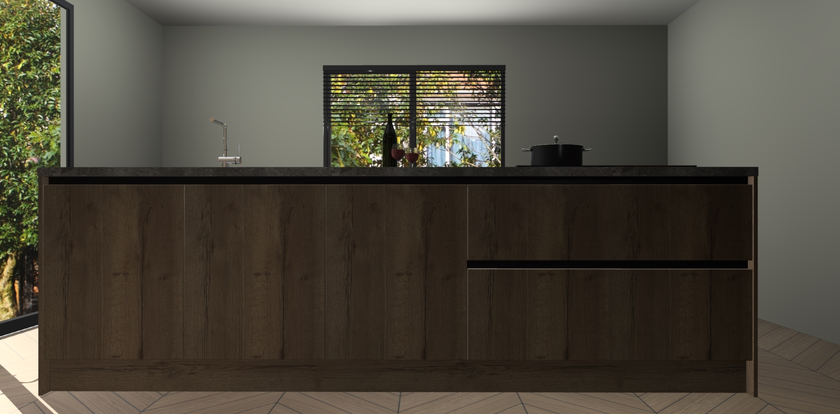 Sfeervol luxe met de Chocolade Eiken greeploze keuken Lodz! Reken op een moderne look die met zijn schitterende Chocolade Eiken kleur en het prachtige keukeneiland echt zal schitteren in uw keuken. Met veel verschillende berging opties zult u alles kunnen opbergen wat u nodig heeft in deze hoopvolle ruimte, waaronder ook soft-close vergrendeling.