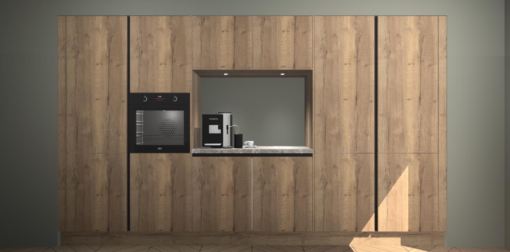 De Chocolade Eiken greeploze keuken Lodz wordt geleverd met een set van 5 ingebouwde apparaten: Een oven, inductiekookplaat, afzuigkap, vaatwasser en koelkast. Deze kunnen gemakkelijk worden opgewaardeerd naar AEG. Met de gegarandeerde lage prijs en de snelle levering van 7 weken kan u er op rekenen dat de Chocolade Eiken greeploze keuken Lodz zo snel mogelijk uw huis bereikt!