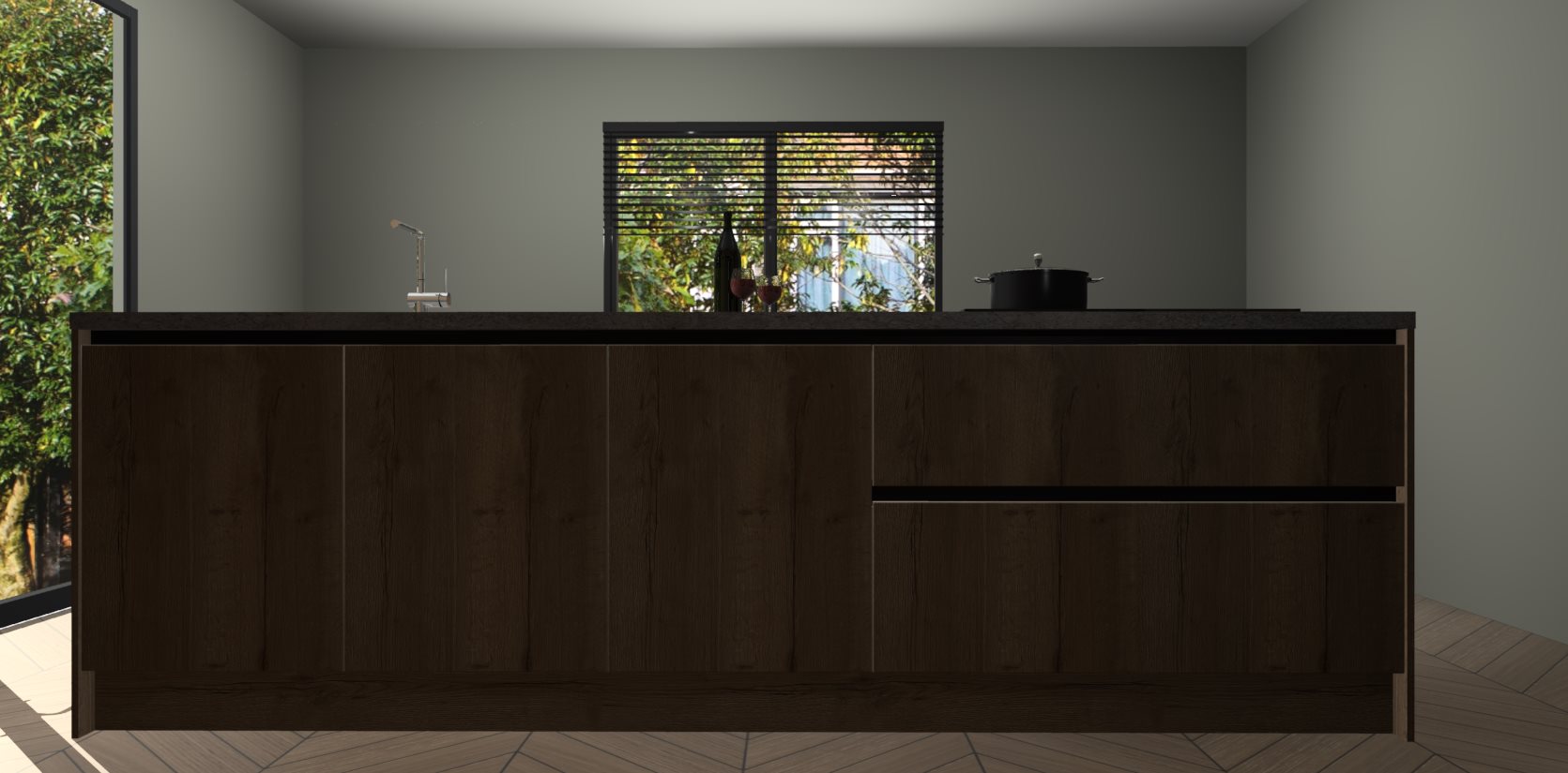 Sfeervol luxe met de Chocolade Eiken greeploze keuken Lodz! Reken op een moderne look die met zijn schitterende Chocolade Eiken kleur en het prachtige keukeneiland echt zal schitteren in uw keuken. Met veel verschillende berging opties zult u alles kunnen opbergen wat u nodig heeft in deze hoopvolle ruimte, waaronder ook soft-close vergrendeling.