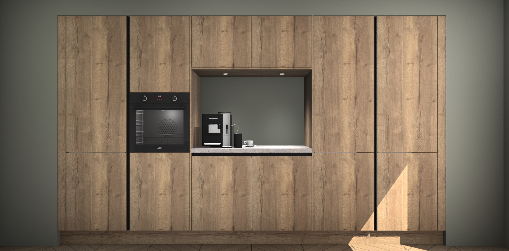 De Chocolade Eiken greeploze keuken Lodz wordt geleverd met een set van 5 ingebouwde apparaten: Een oven, inductiekookplaat, afzuigkap, vaatwasser en koelkast. Deze kunnen gemakkelijk worden opgewaardeerd naar AEG. Met de gegarandeerde lage prijs en de snelle levering van 7 weken kan u er op rekenen dat de Chocolade Eiken greeploze keuken Lodz zo snel mogelijk uw huis bereikt!
