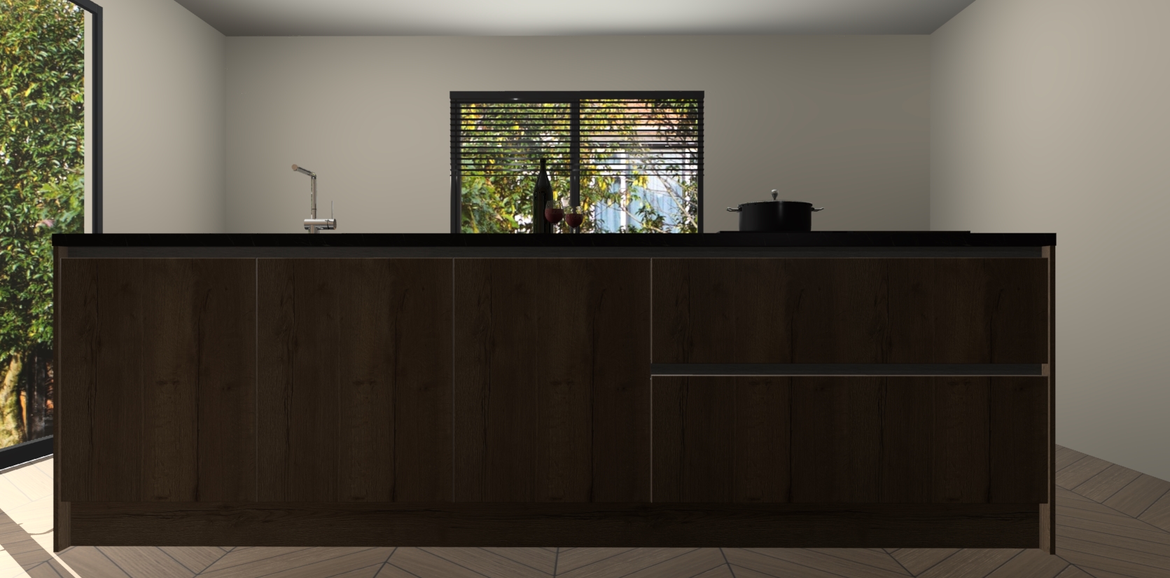 Sfeervol luxe met de Chocolade Eiken greeploze keuken Lodz! Reken op een moderne look die met zijn schitterende Chocolade Eiken kleur en het prachtige keukeneiland echt zal schitteren in uw keuken. Met veel verschillende berging opties zult u alles kunnen opbergen wat u nodig heeft in deze hoopvolle ruimte, waaronder ook soft-close vergrendeling.