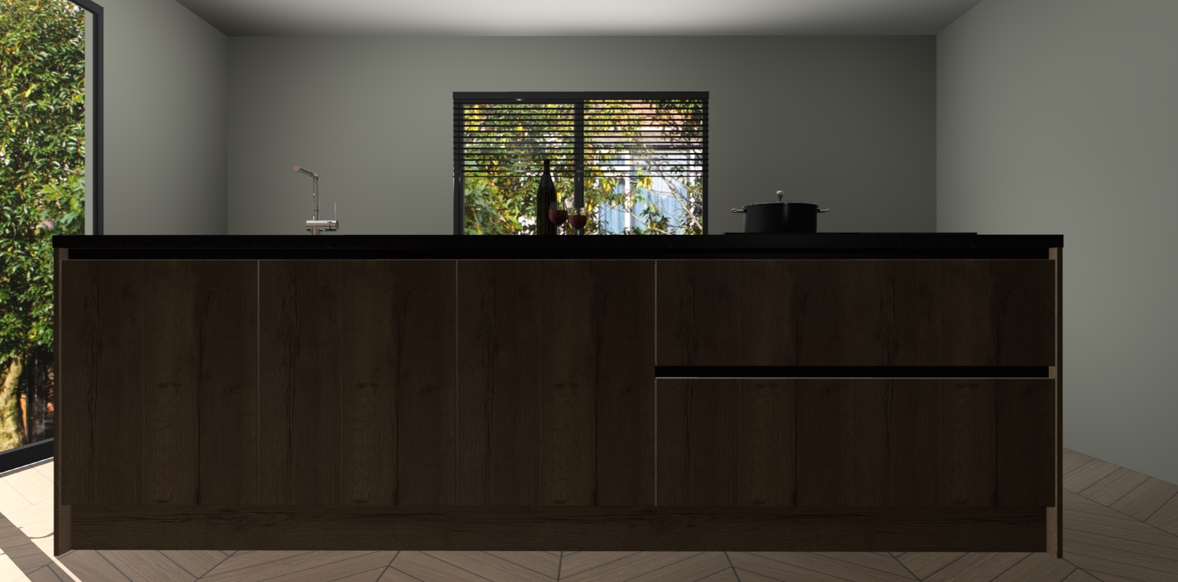 Sfeervol luxe met de Chocolade Eiken greeploze keuken Lodz! Reken op een moderne look die met zijn schitterende Chocolade Eiken kleur en het prachtige keukeneiland echt zal schitteren in uw keuken. Met veel verschillende berging opties zult u alles kunnen opbergen wat u nodig heeft in deze hoopvolle ruimte, waaronder ook soft-close vergrendeling.