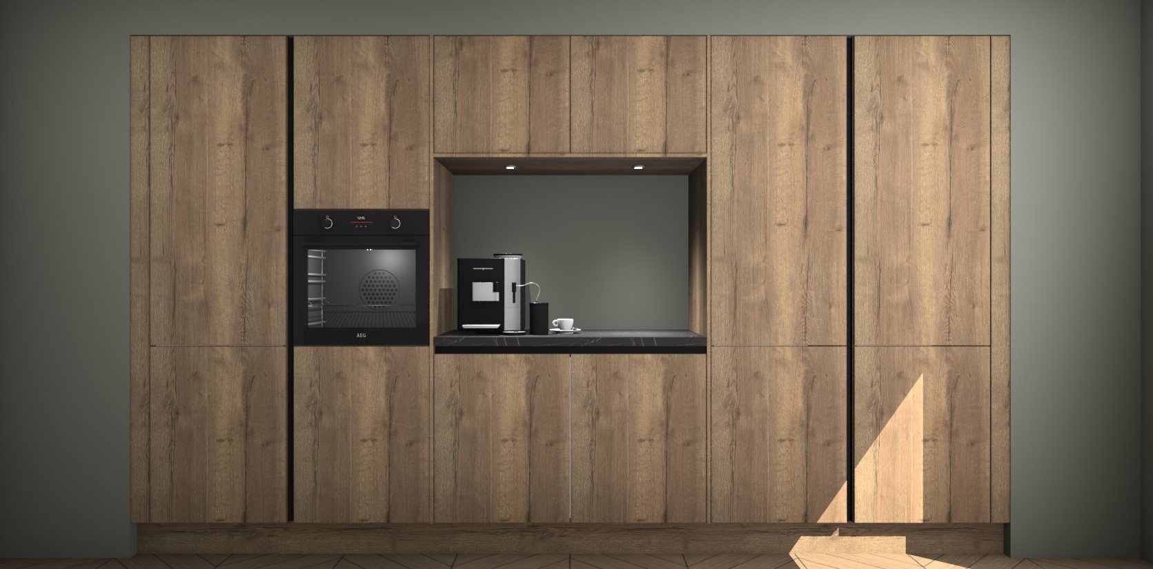 De Chocolade Eiken greeploze keuken Lodz wordt geleverd met een set van 5 ingebouwde apparaten: Een oven, inductiekookplaat, afzuigkap, vaatwasser en koelkast. Deze kunnen gemakkelijk worden opgewaardeerd naar AEG. Met de gegarandeerde lage prijs en de snelle levering van 7 weken kan u er op rekenen dat de Chocolade Eiken greeploze keuken Lodz zo snel mogelijk uw huis bereikt!