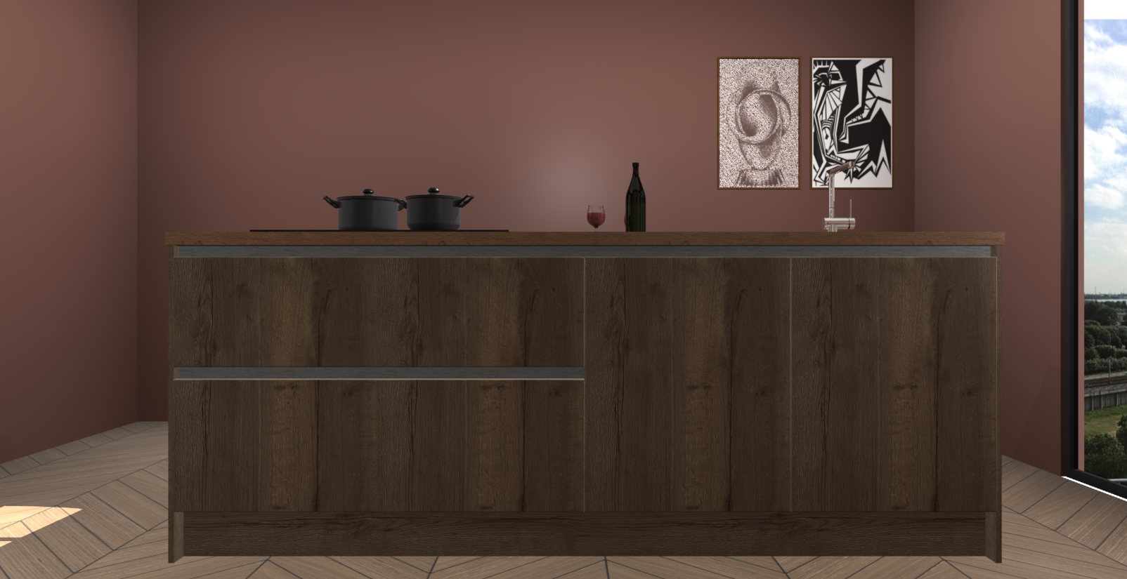 Breng luxe in uw keuken met de Chocolade Eiken greeploze Rusiec Keuken! Dit prachtige kookeiland straalt elegantie uit en laat elke ruimte er modern en verfijnd uitzien. De strakke Chocolade Eiken kleur geeft uw keuken een gevoel van sfeer en verfijning dat u bij andere stijlen niet krijgt.