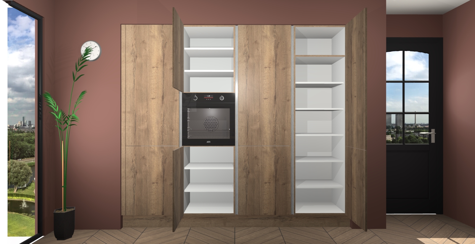 Dankzij de vele opbergruimte wordt praktisch elke centimeter van uw keuken optimaal benut, wat de ruimte een opgeruimde en sfeervolle uitstraling geeft. Bovendien zijn we er trots op dat we een snelle levering van 7 weken en een vaste lage prijs kunnen bieden, zodat u deze prachtige keuken in een mum van tijd in huis hebt!