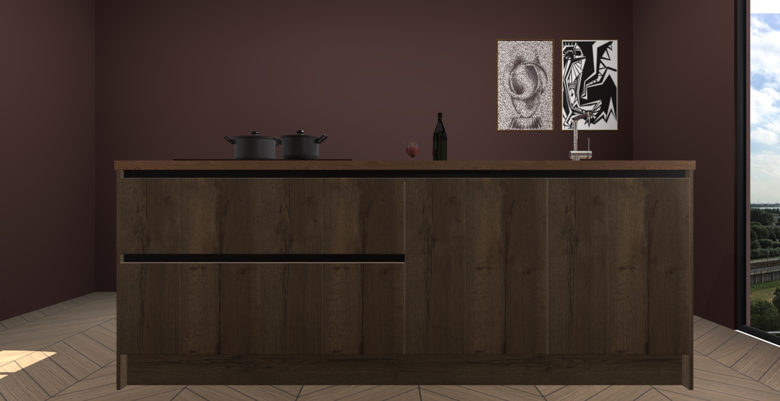 Breng luxe in uw keuken met de Chocolade Eiken Rusiec Keuken! Dit prachtige kookeiland straalt elegantie uit en laat elke ruimte er modern en verfijnd uitzien. De strakke Chocolade Eiken kleur geeft uw keuken een gevoel van sfeer en verfijning dat u bij andere stijlen niet krijgt.
