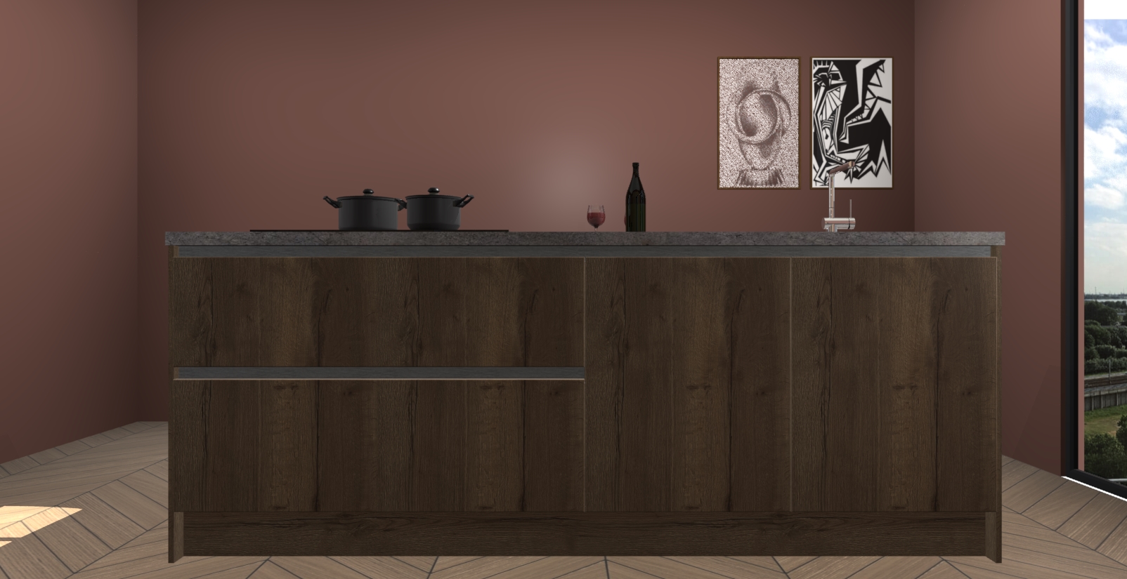 Breng luxe in uw keuken met de Chocolade Eiken greeploze Rusiec Keuken! Dit prachtige kookeiland straalt elegantie uit en laat elke ruimte er modern en verfijnd uitzien. De strakke Chocolade Eiken kleur geeft uw keuken een gevoel van sfeer en verfijning dat u bij andere stijlen niet krijgt.