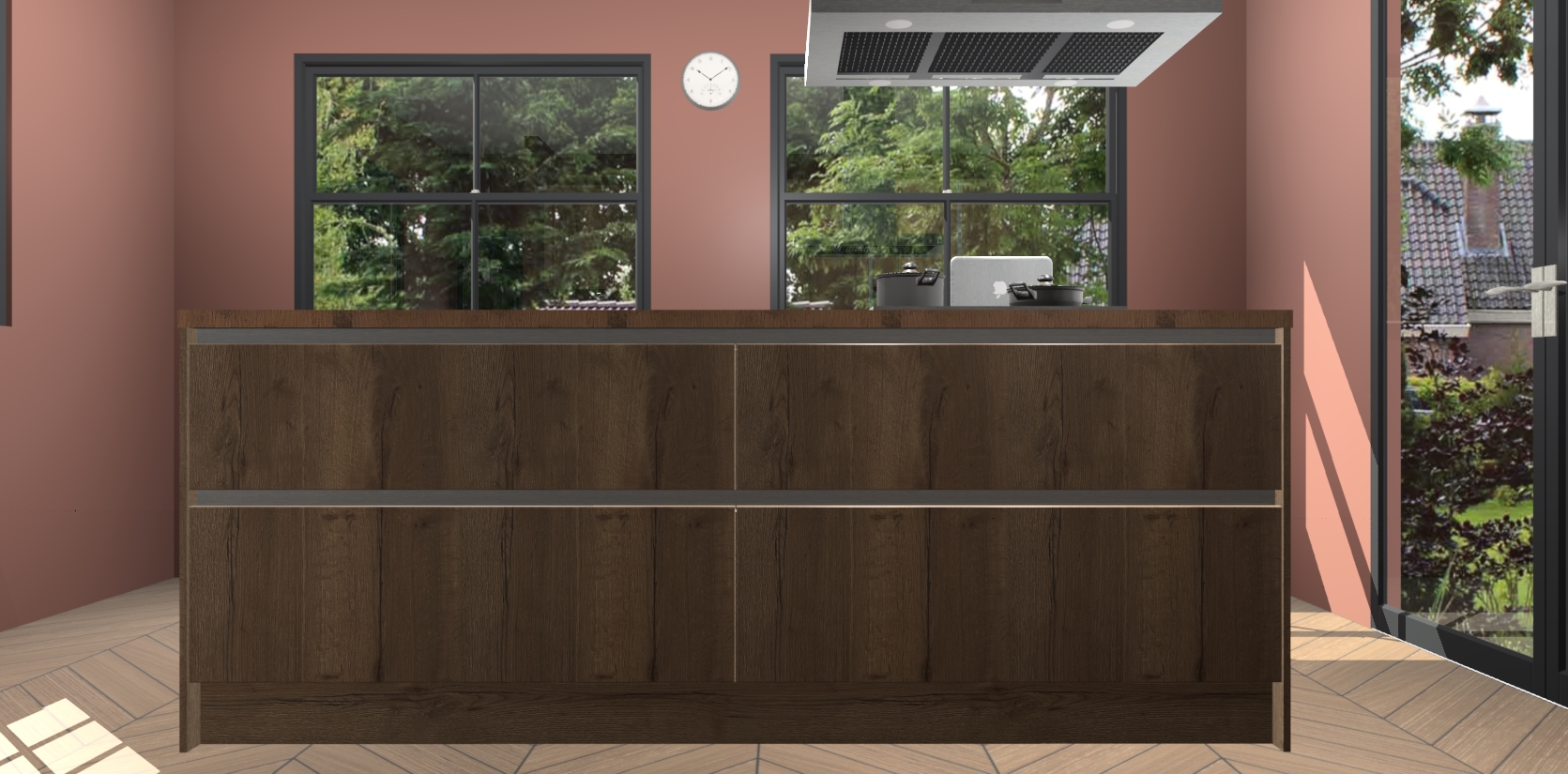 Maak kennis met de nieuwe Chocolade Eiken greeploze keuken Straatsburg, dat gemaakt is voor de moderne huiseigenaar. Deze chique en eigentijdse keuken geeft uw huis een instant upgrade. Het Chocolade Eiken greeploze ontwerp creëert de perfecte balans tussen elegantie en functionaliteit en geeft uw ruimte een strakke, uitnodigende sfeer. Het spoeleiland geeft ruime opbergruimte en met de soft-close deuren is deze keuken perfect voor elk huis.