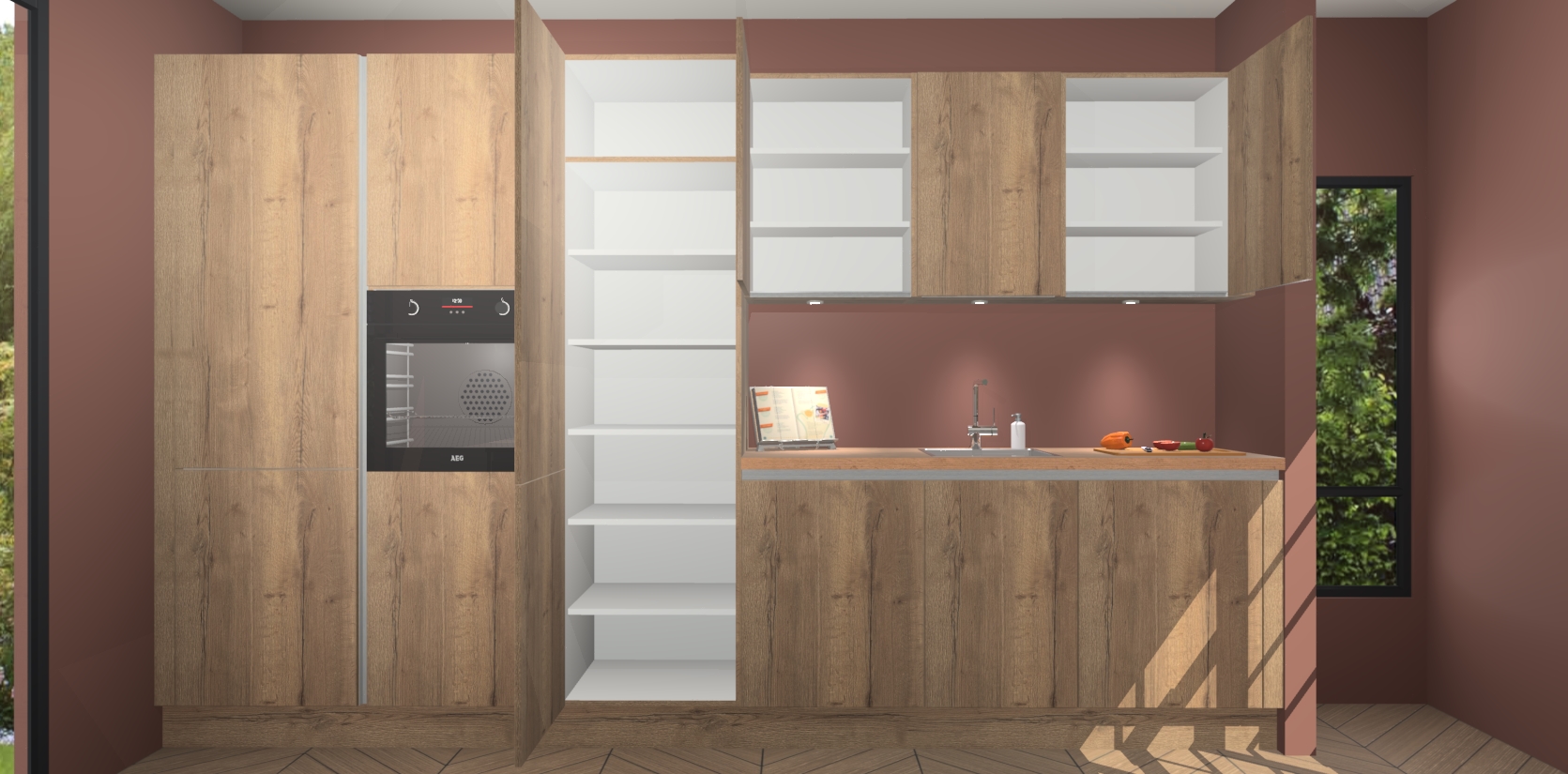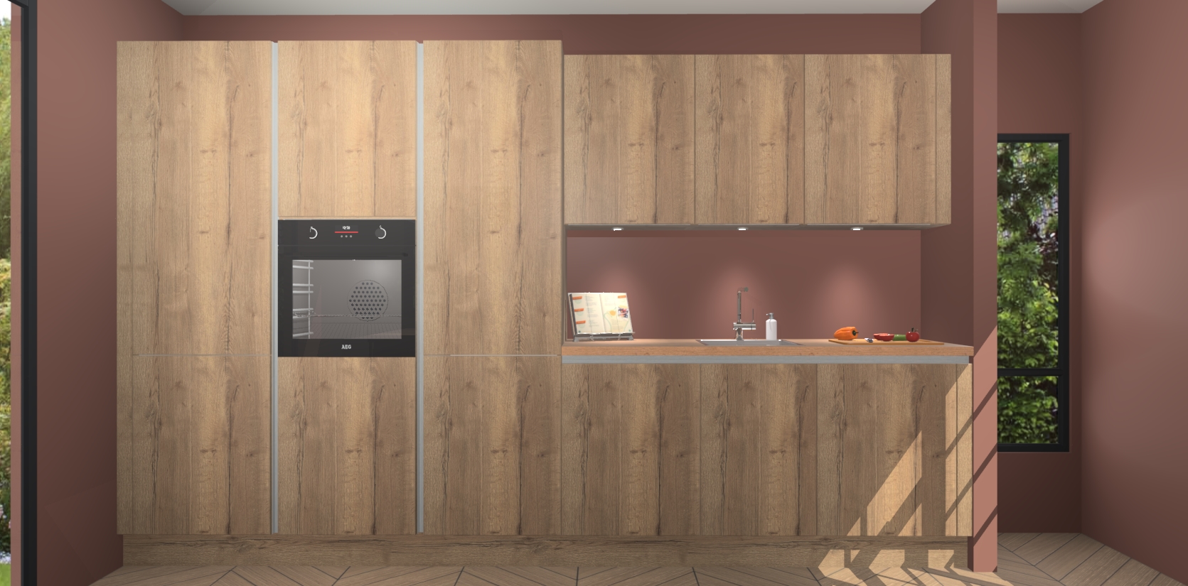 De Chocolade Eiken greeploze keuken Straatsburg wordt geleverd met een snelle levertijd van 7 weken, zodat u hem zo snel mogelijk kunt installeren. En omdat de kasten voorgemonteerd worden geleverd, is de installatie snel en eenvoudig - dat scheelt tijd en gedoe.