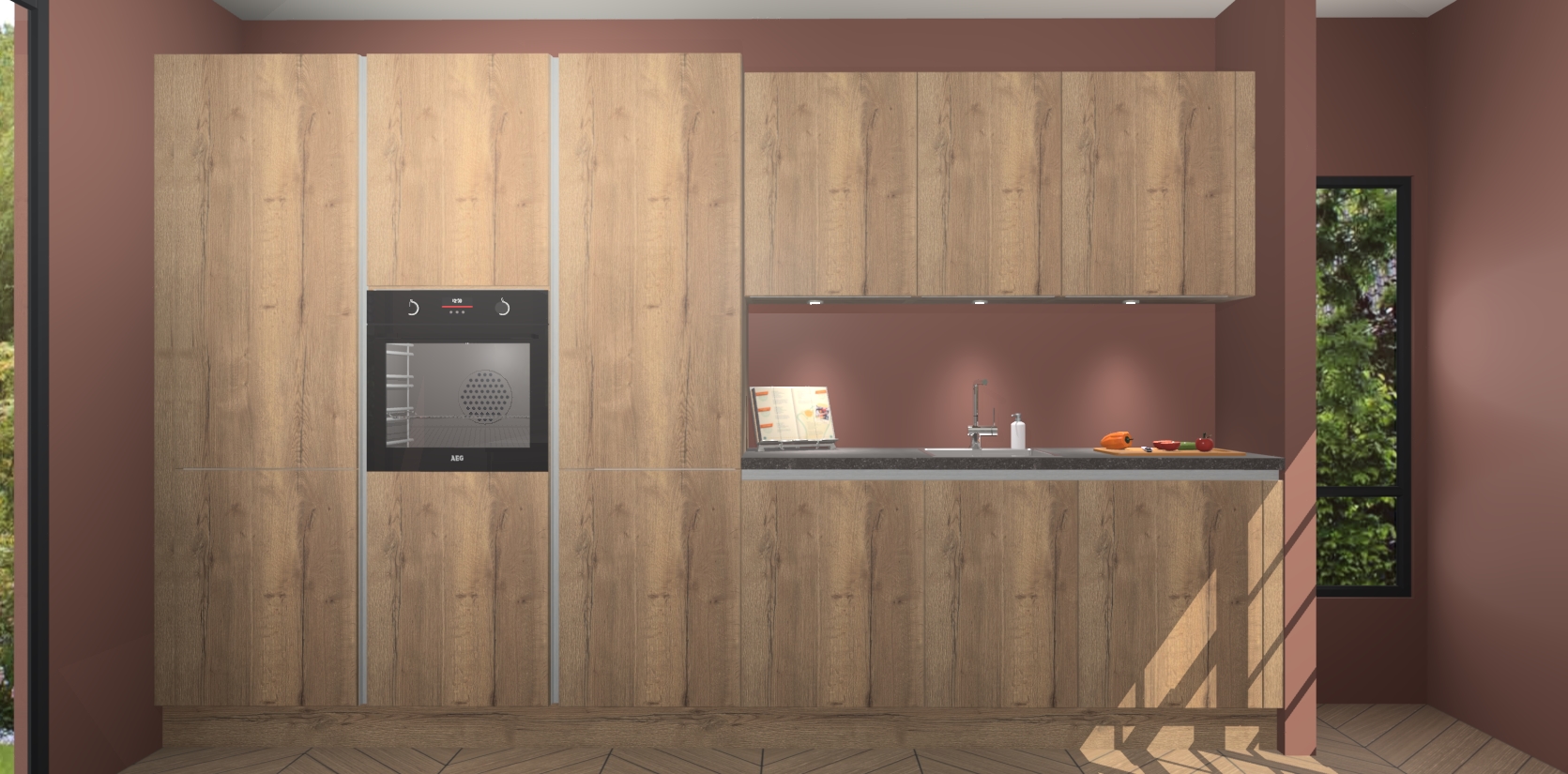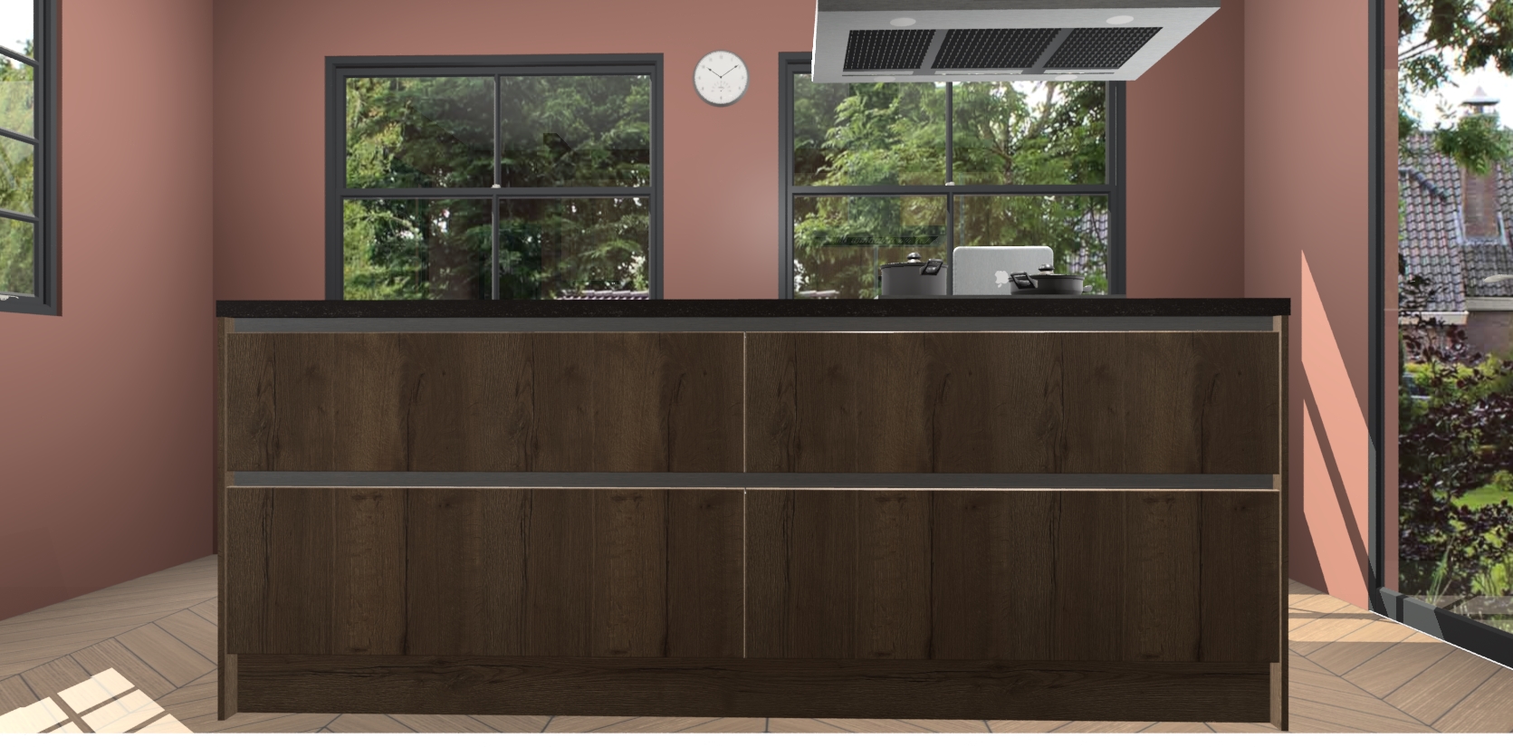 De Chocolade Eiken greeploze keuken Straatsburg wordt geleverd met een snelle levertijd van 7 weken, zodat u hem zo snel mogelijk kunt installeren. En omdat de kasten voorgemonteerd worden geleverd, is de installatie snel en eenvoudig - dat scheelt tijd en gedoe.