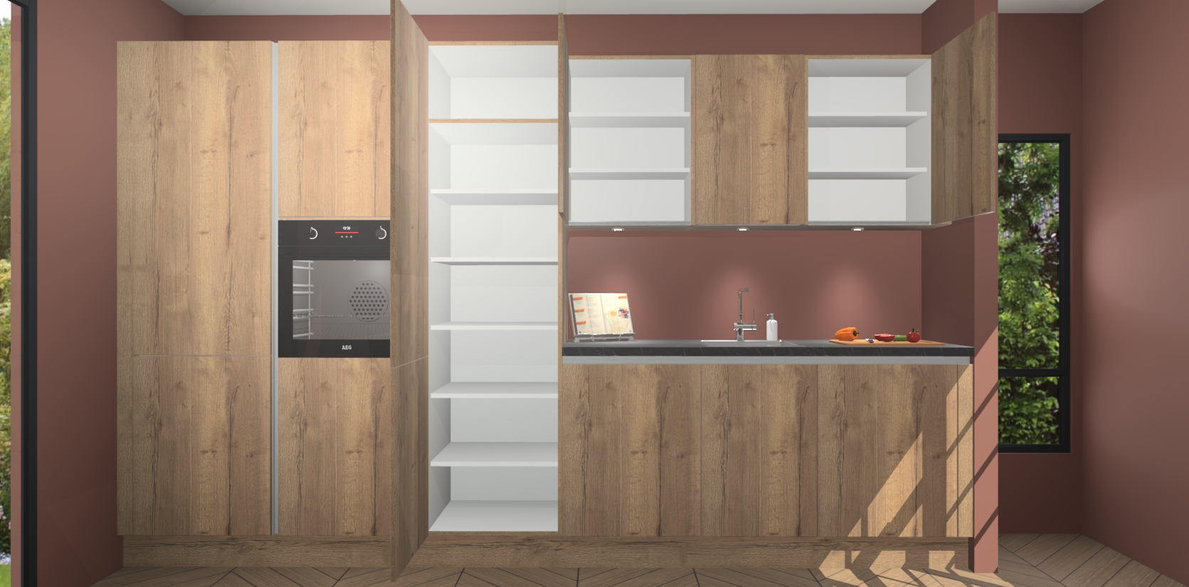 De Chocolade Eiken greeploze keuken Straatsburg wordt geleverd met een snelle levertijd van 7 weken, zodat u hem zo snel mogelijk kunt installeren. En omdat de kasten voorgemonteerd worden geleverd, is de installatie snel en eenvoudig - dat scheelt tijd en gedoe.