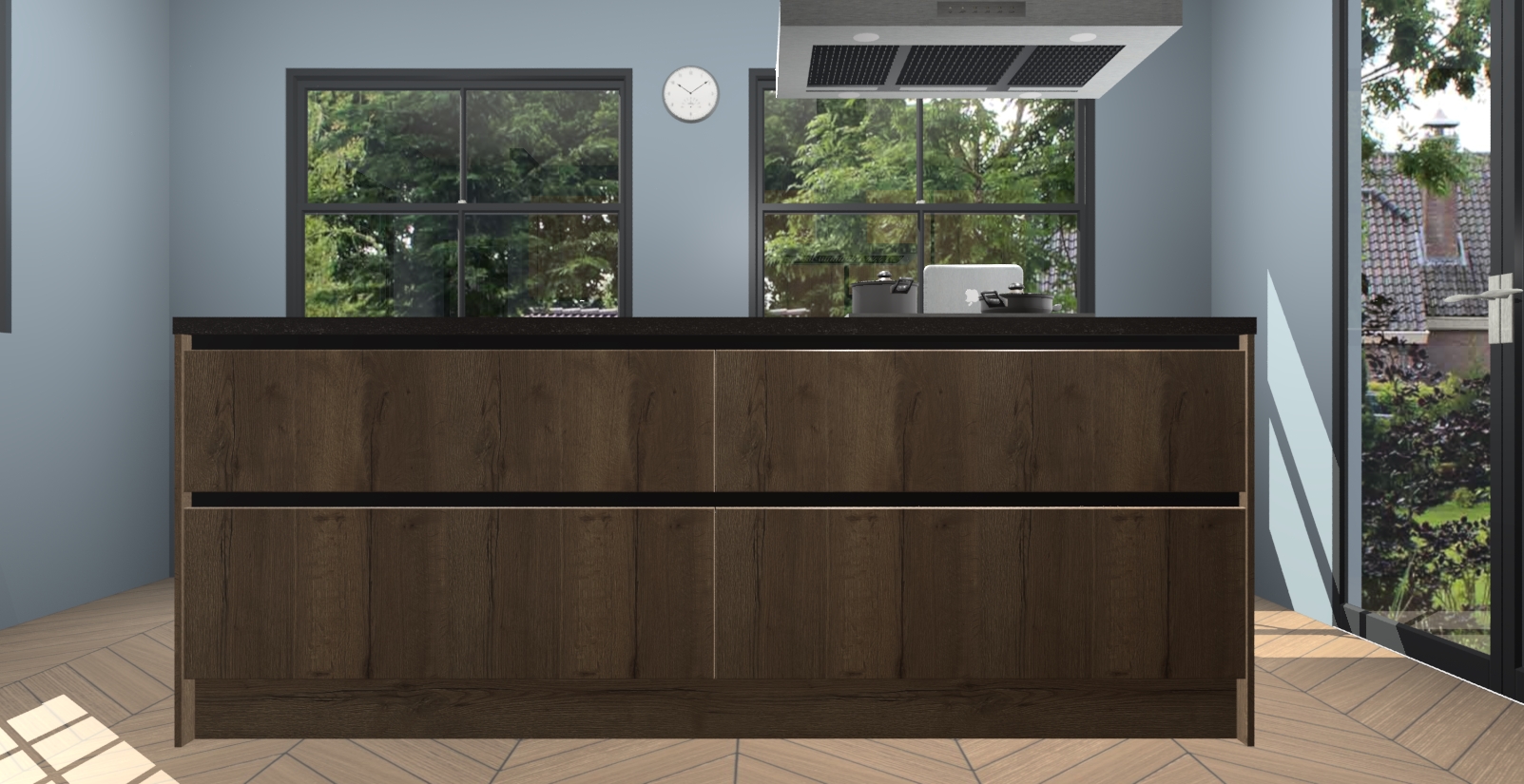 Maak kennis met de nieuwe Chocolade Eiken greeploze keuken Straatsburg, dat gemaakt is voor de moderne huiseigenaar. Deze chique en eigentijdse keuken geeft uw huis een instant upgrade. Het Chocolade Eiken greeploze ontwerp creëert de perfecte balans tussen elegantie en functionaliteit en geeft uw ruimte een strakke, uitnodigende sfeer. Het spoeleiland geeft ruime opbergruimte en met de soft-close deuren is deze keuken perfect voor elk huis.