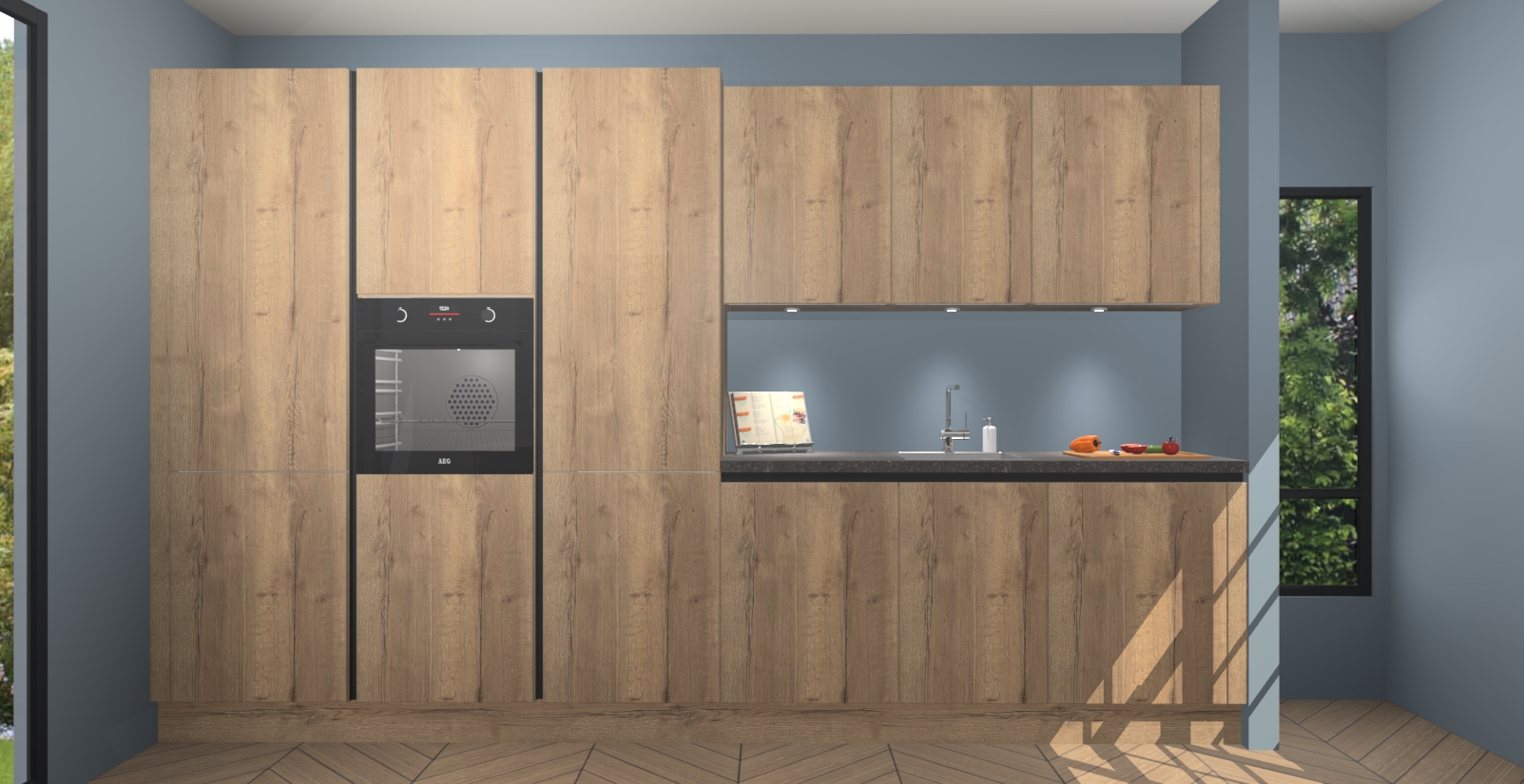 De Chocolade Eiken greeploze keuken Straatsburg wordt geleverd met een snelle levertijd van 7 weken, zodat u hem zo snel mogelijk kunt installeren. En omdat de kasten voorgemonteerd worden geleverd, is de installatie snel en eenvoudig - dat scheelt tijd en gedoe.