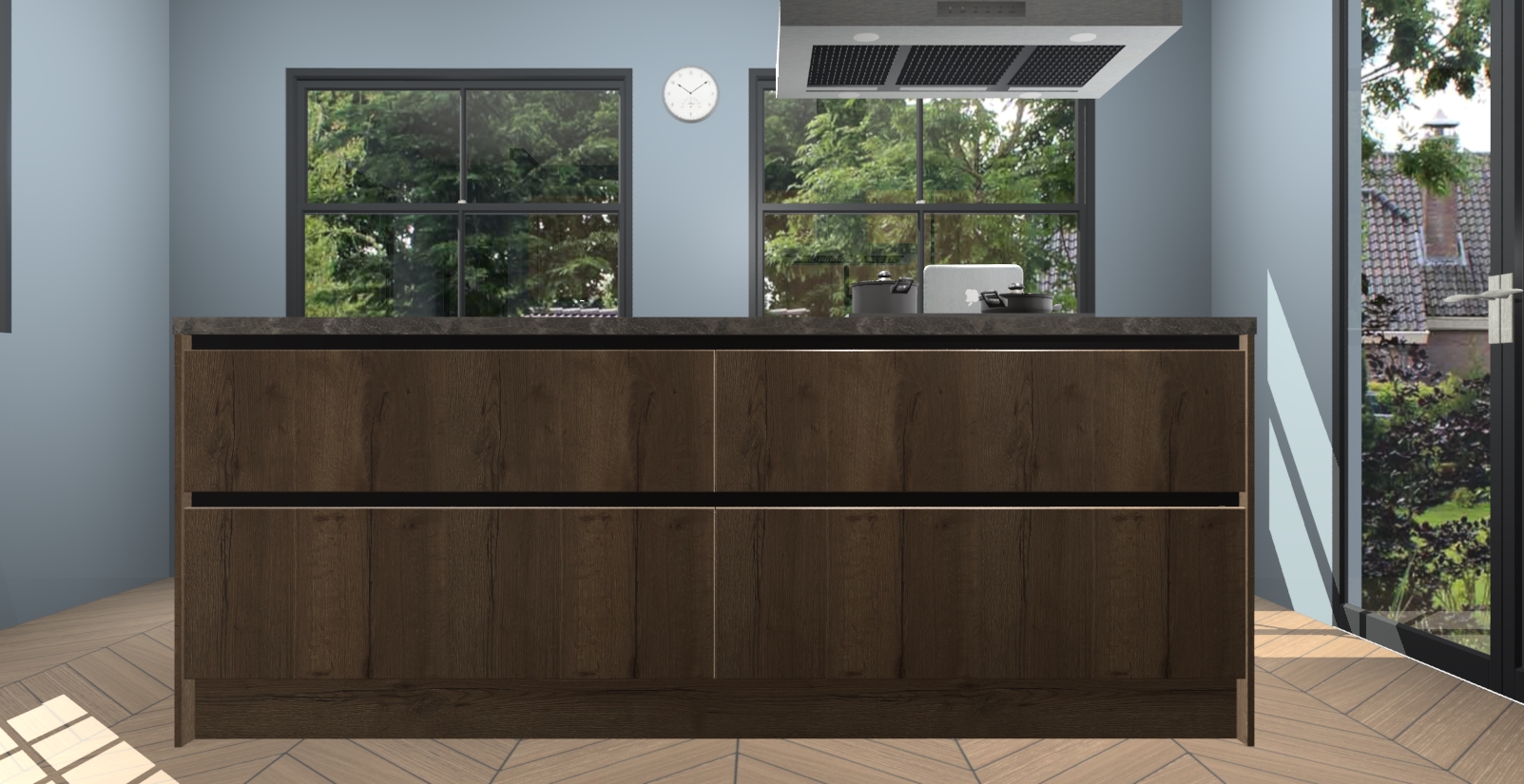 De Chocolade Eiken greeploze keuken Straatsburg wordt geleverd met een snelle levertijd van 7 weken, zodat u hem zo snel mogelijk kunt installeren. En omdat de kasten voorgemonteerd worden geleverd, is de installatie snel en eenvoudig - dat scheelt tijd en gedoe.