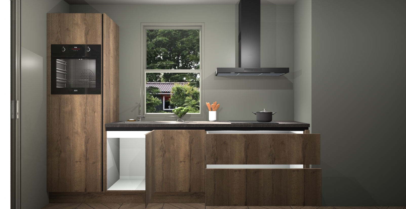 Dankzij de greeploze afwerking past de Chocolade Eiken keuken Toulouse naadloos in elk huis of appartement. De soft-close deuren geven je extra gemoedsrust, want ze sluiten vanzelf en slaan nooit dicht! En alsof dat nog niet genoeg is, worden deze kasten volledig gemonteerd geleverd, dus maak je geen zorgen over eventuele installatieproblemen.