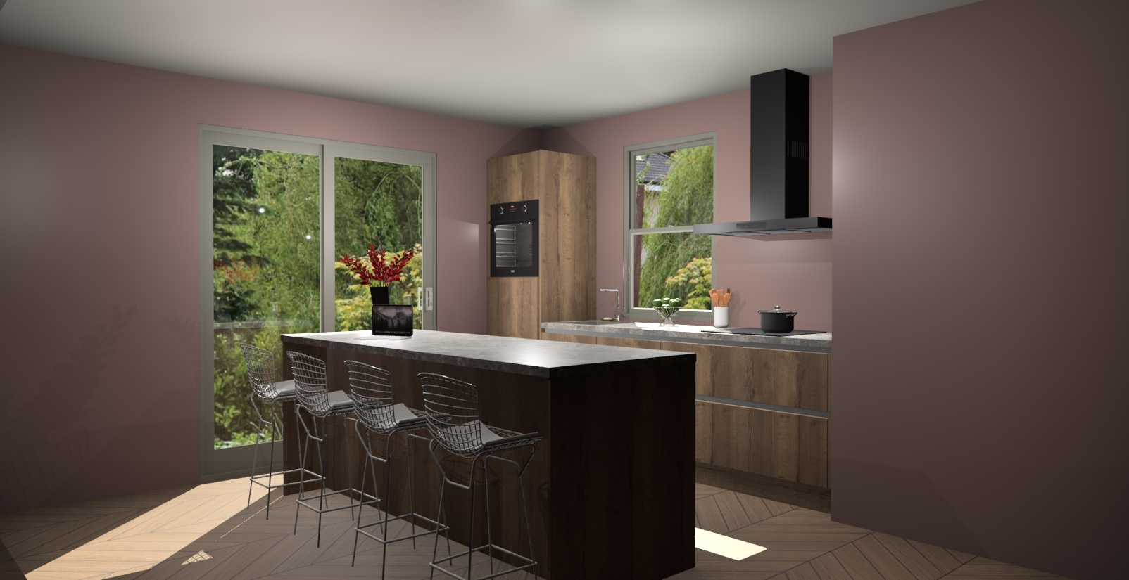 Een stijlvolle en praktische keuken als deze mag gezien worden. Dankzij de prachtige Chocolade Eiken afwerking wordt de keuken gemakkelijk het middelpunt van uw huis - hij ziet er geweldig uit onder allerlei lichtomstandigheden, van dag tot nacht!