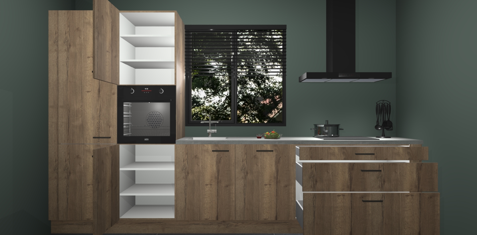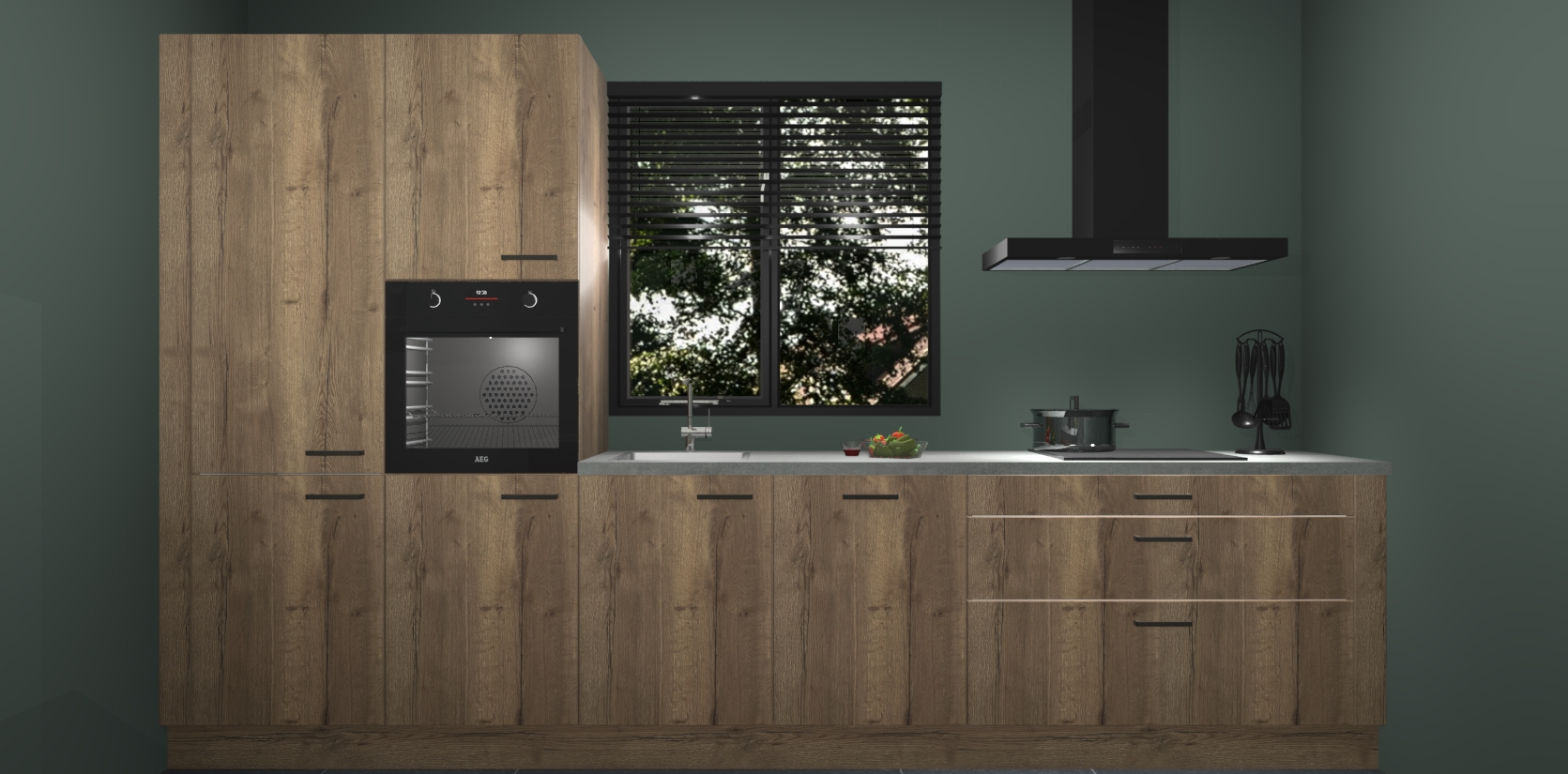 Maak kennis met de chocolade eiken keuken Bonaire: de perfecte balans tussen tijdloos en modern. Met voldoende opbergruimte zal deze keuken de afgunst van uw vrienden en familie zijn, terwijl uw leven moeiteloos georganiseerd en rommelvrij blijft.