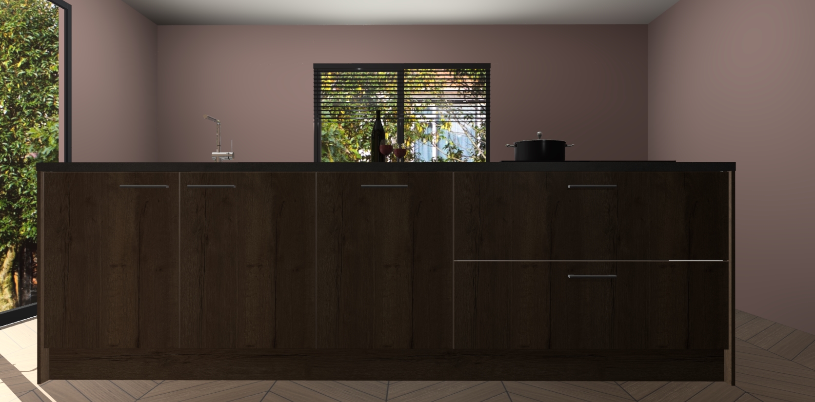 Sfeervol luxe met de Chocolade Eiken keuken Lodz! Reken op een moderne look die met zijn schitterende Chocolade Eiken kleur en het prachtige keukeneiland echt zal schitteren in uw keuken. Met veel verschillende berging opties zult u alles kunnen opbergen wat u nodig heeft in deze hoopvolle ruimte, waaronder ook soft-close vergrendeling.