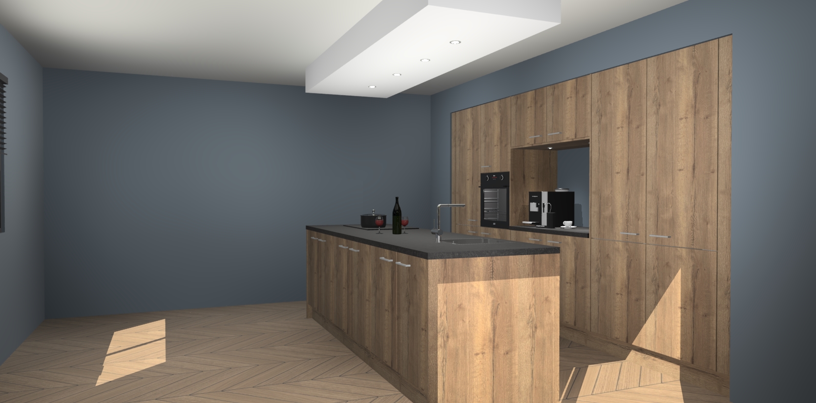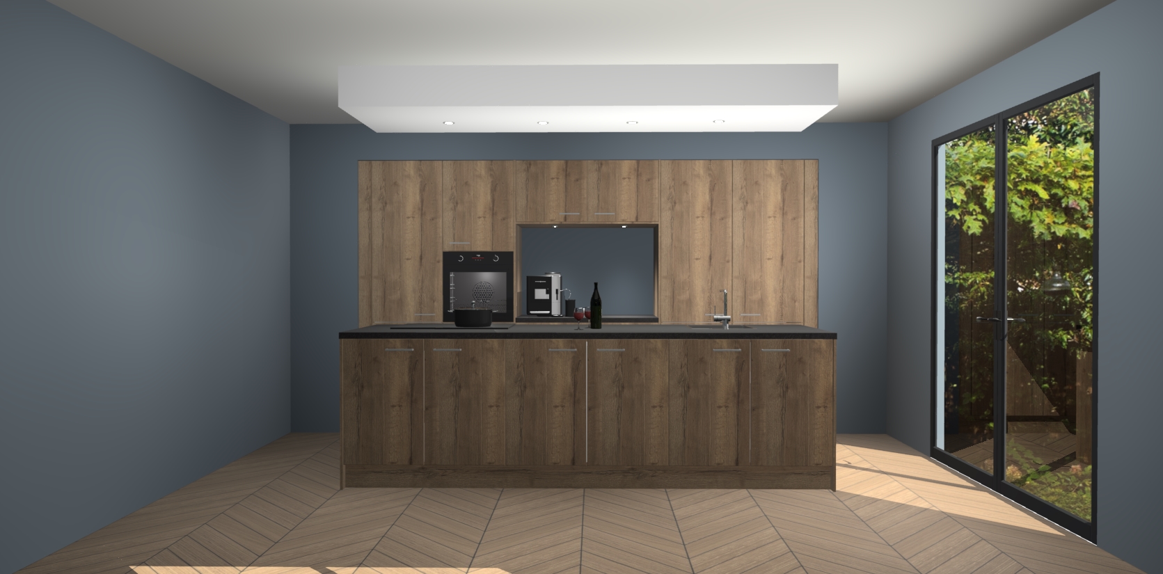 Sfeervol luxe met de Chocolade Eiken keuken Lodz! Reken op een moderne look die met zijn schitterende Chocolade Eiken kleur en het prachtige keukeneiland echt zal schitteren in uw keuken. Met veel verschillende berging opties zult u alles kunnen opbergen wat u nodig heeft in deze hoopvolle ruimte, waaronder ook soft-close vergrendeling.