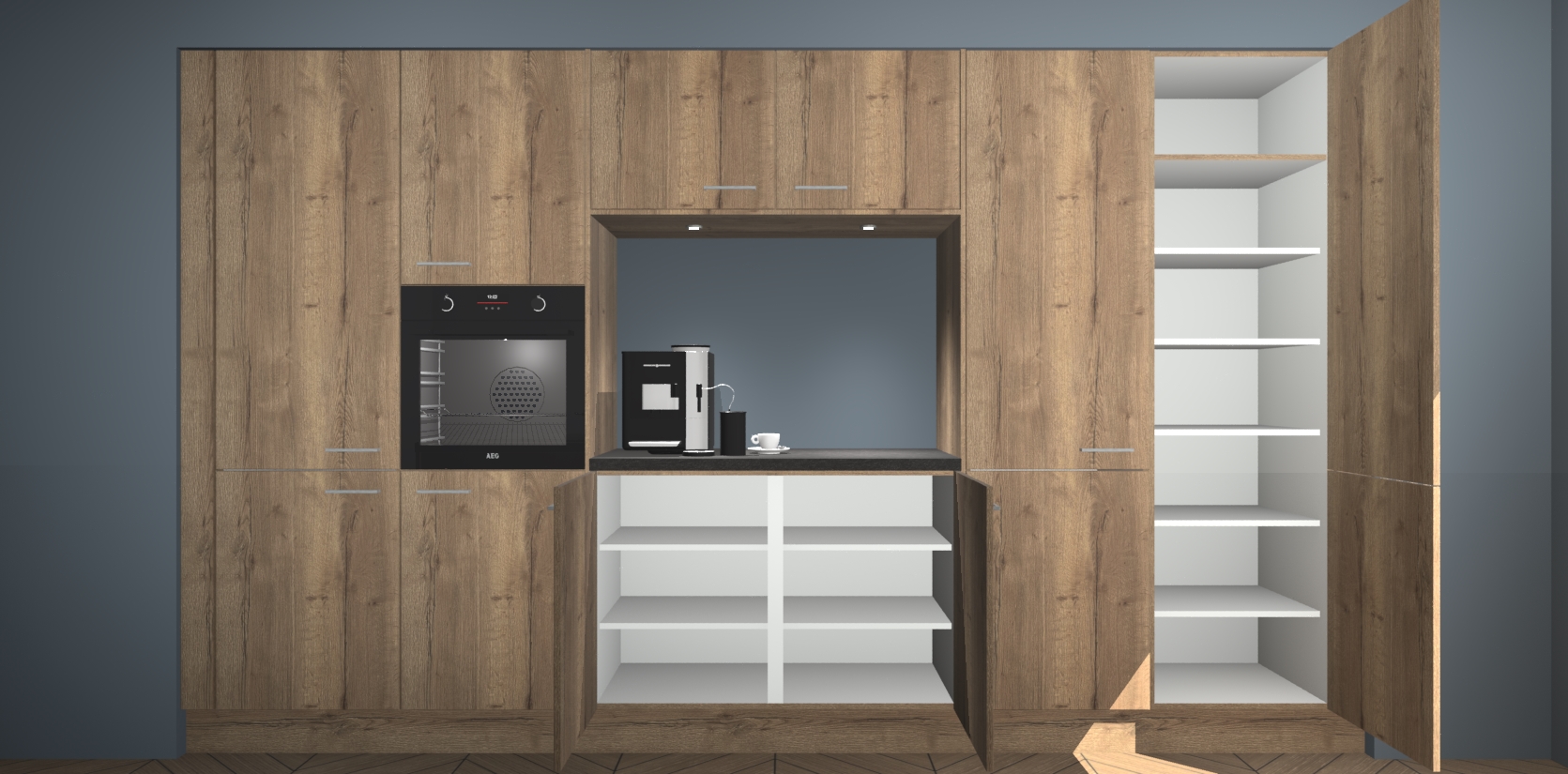 De Chocolade Eiken keuken Lodz wordt geleverd met een set van 5 ingebouwde apparaten: Een oven, inductiekookplaat, afzuigkap, vaatwasser en koelkast. Deze kunnen gemakkelijk worden opgewaardeerd naar AEG. Met de gegarandeerde lage prijs en de snelle levering van 7 weken kan u er op rekenen dat de Chocolade Eiken keuken Lodz zo snel mogelijk uw huis bereikt!