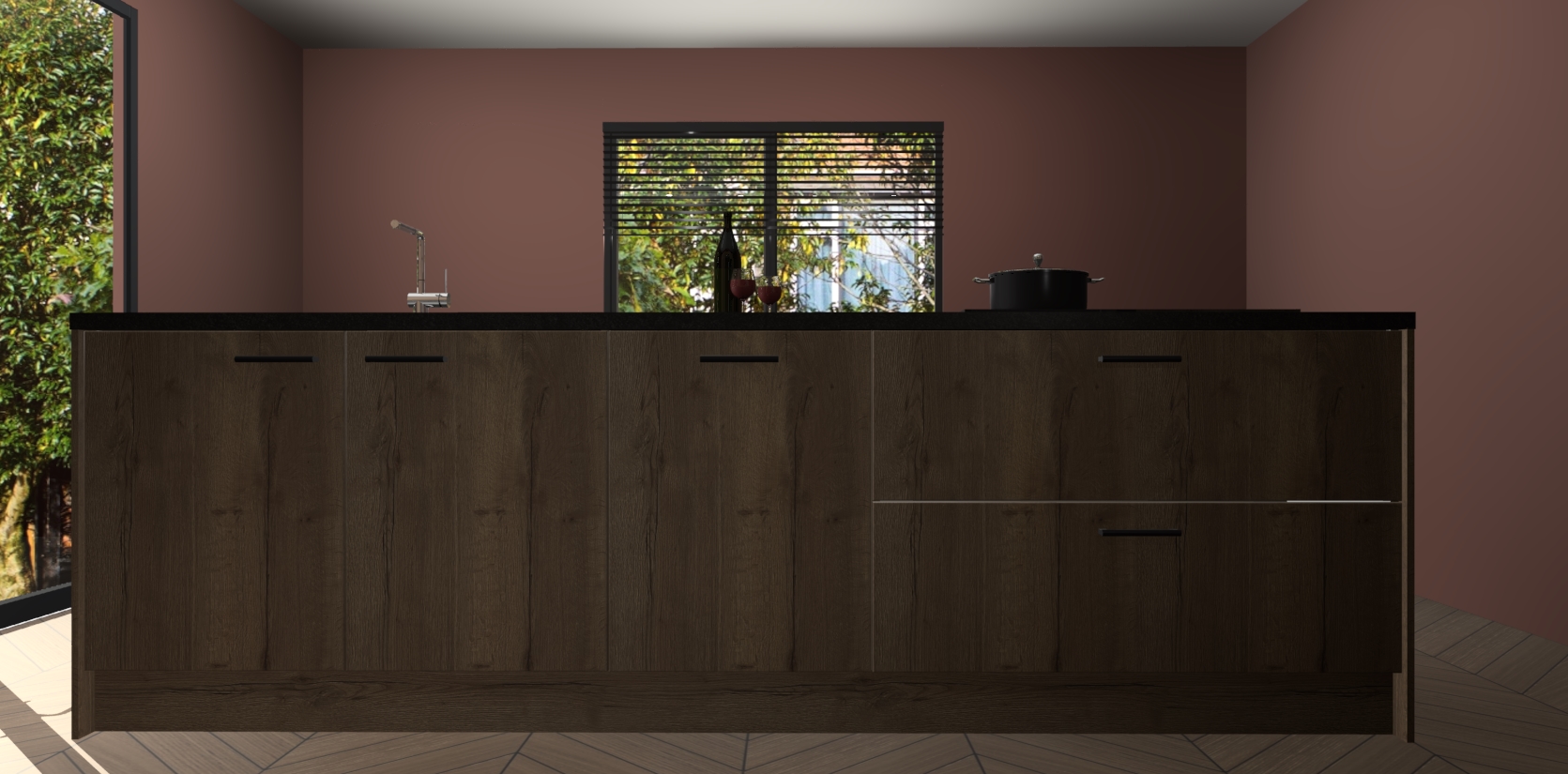 Sfeervol luxe met de Chocolade Eiken keuken Lodz! Reken op een moderne look die met zijn schitterende Chocolade Eiken kleur en het prachtige keukeneiland echt zal schitteren in uw keuken. Met veel verschillende berging opties zult u alles kunnen opbergen wat u nodig heeft in deze hoopvolle ruimte, waaronder ook soft-close vergrendeling.