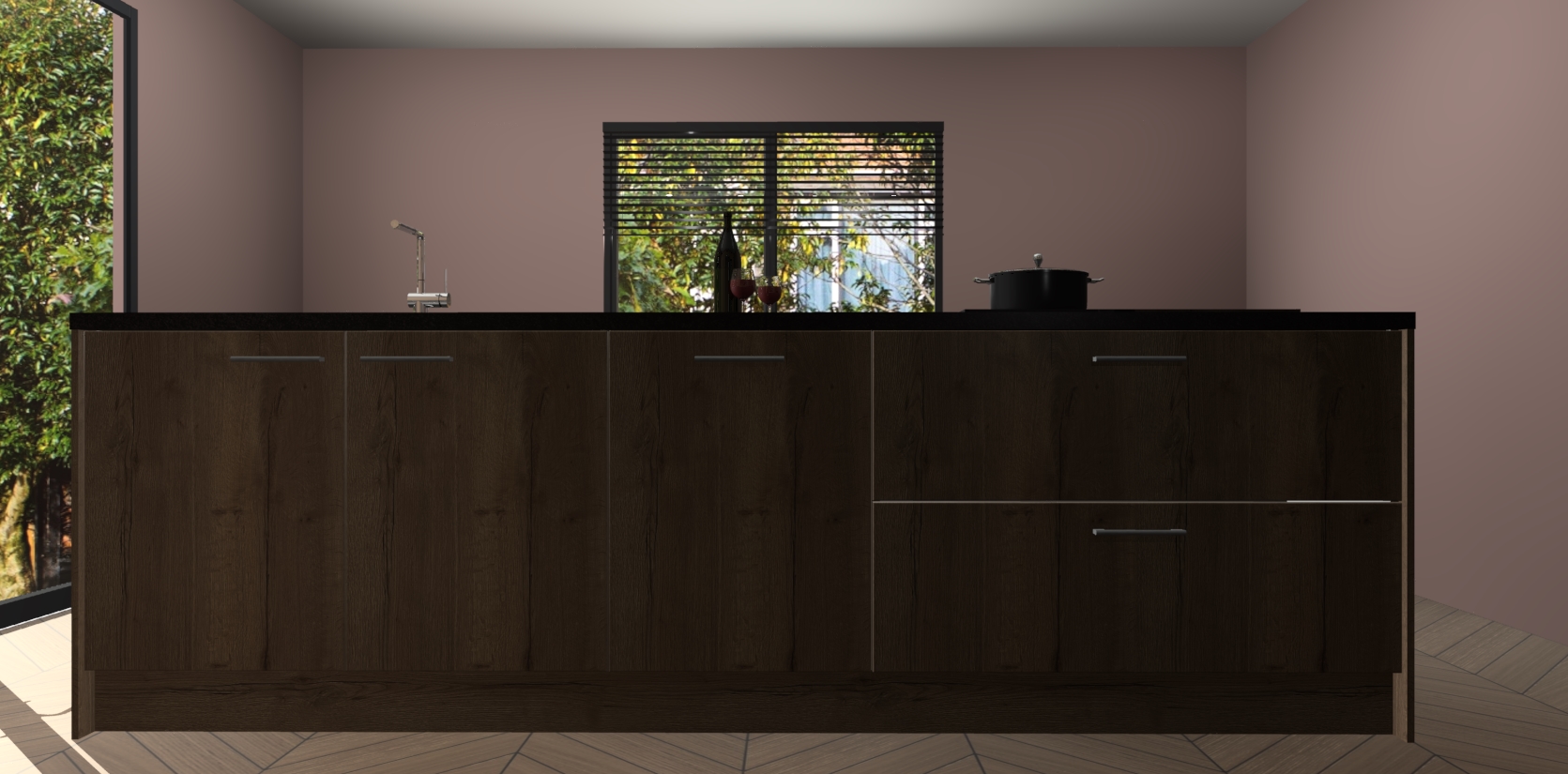 Sfeervol luxe met de Chocolade Eiken keuken Lodz! Reken op een moderne look die met zijn schitterende Chocolade Eiken kleur en het prachtige keukeneiland echt zal schitteren in uw keuken. Met veel verschillende berging opties zult u alles kunnen opbergen wat u nodig heeft in deze hoopvolle ruimte, waaronder ook soft-close vergrendeling.
