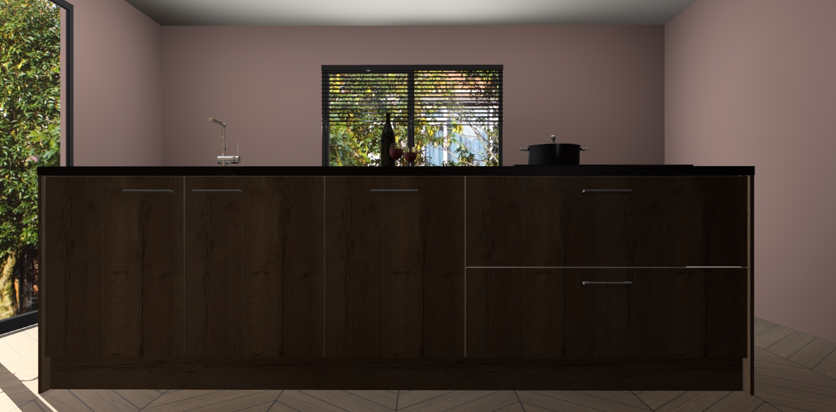 Sfeervol luxe met de Chocolade Eiken keuken Lodz! Reken op een moderne look die met zijn schitterende Chocolade Eiken kleur en het prachtige keukeneiland echt zal schitteren in uw keuken. Met veel verschillende berging opties zult u alles kunnen opbergen wat u nodig heeft in deze hoopvolle ruimte, waaronder ook soft-close vergrendeling.