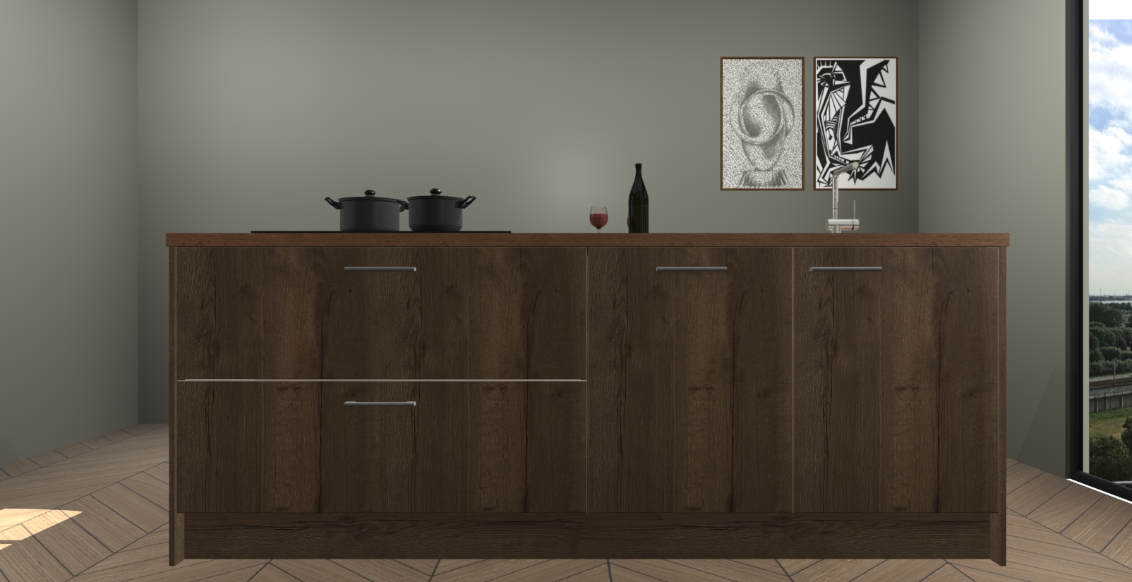 Breng luxe in uw keuken met de Chocolade Eiken Rusiec Keuken! Dit prachtige kookeiland straalt elegantie uit en laat elke ruimte er modern en verfijnd uitzien. De strakke Chocolade Eiken kleur geeft uw keuken een gevoel van sfeer en verfijning dat u bij andere stijlen niet krijgt.