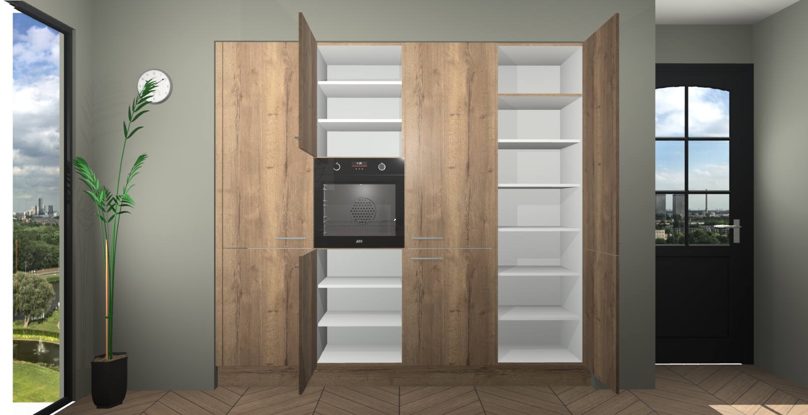 Dankzij de vele opbergruimte wordt praktisch elke centimeter van uw keuken optimaal benut, wat de ruimte een opgeruimde en sfeervolle uitstraling geeft. Bovendien zijn we er trots op dat we een snelle levering van 7 weken en een vaste lage prijs kunnen bieden, zodat u deze prachtige keuken in een mum van tijd in huis hebt!