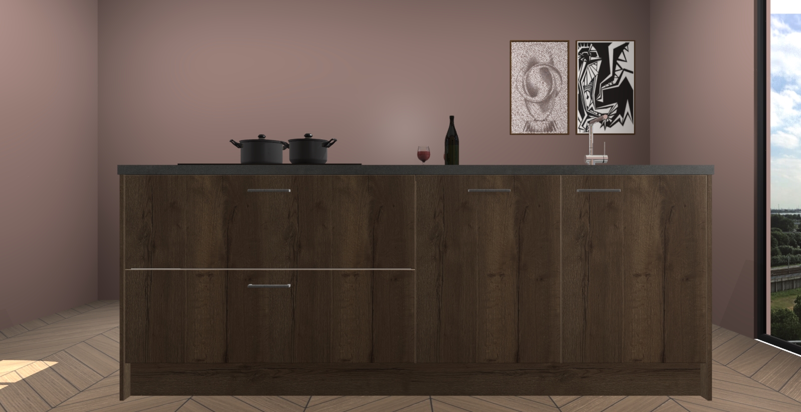 Breng luxe in uw keuken met de Chocolade Eiken Rusiec Keuken! Dit prachtige kookeiland straalt elegantie uit en laat elke ruimte er modern en verfijnd uitzien. De strakke Chocolade Eiken kleur geeft uw keuken een gevoel van sfeer en verfijning dat u bij andere stijlen niet krijgt.