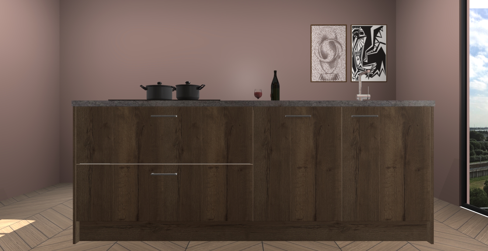 Breng luxe in uw keuken met de Chocolade Eiken Rusiec Keuken! Dit prachtige kookeiland straalt elegantie uit en laat elke ruimte er modern en verfijnd uitzien. De strakke Chocolade Eiken kleur geeft uw keuken een gevoel van sfeer en verfijning dat u bij andere stijlen niet krijgt.