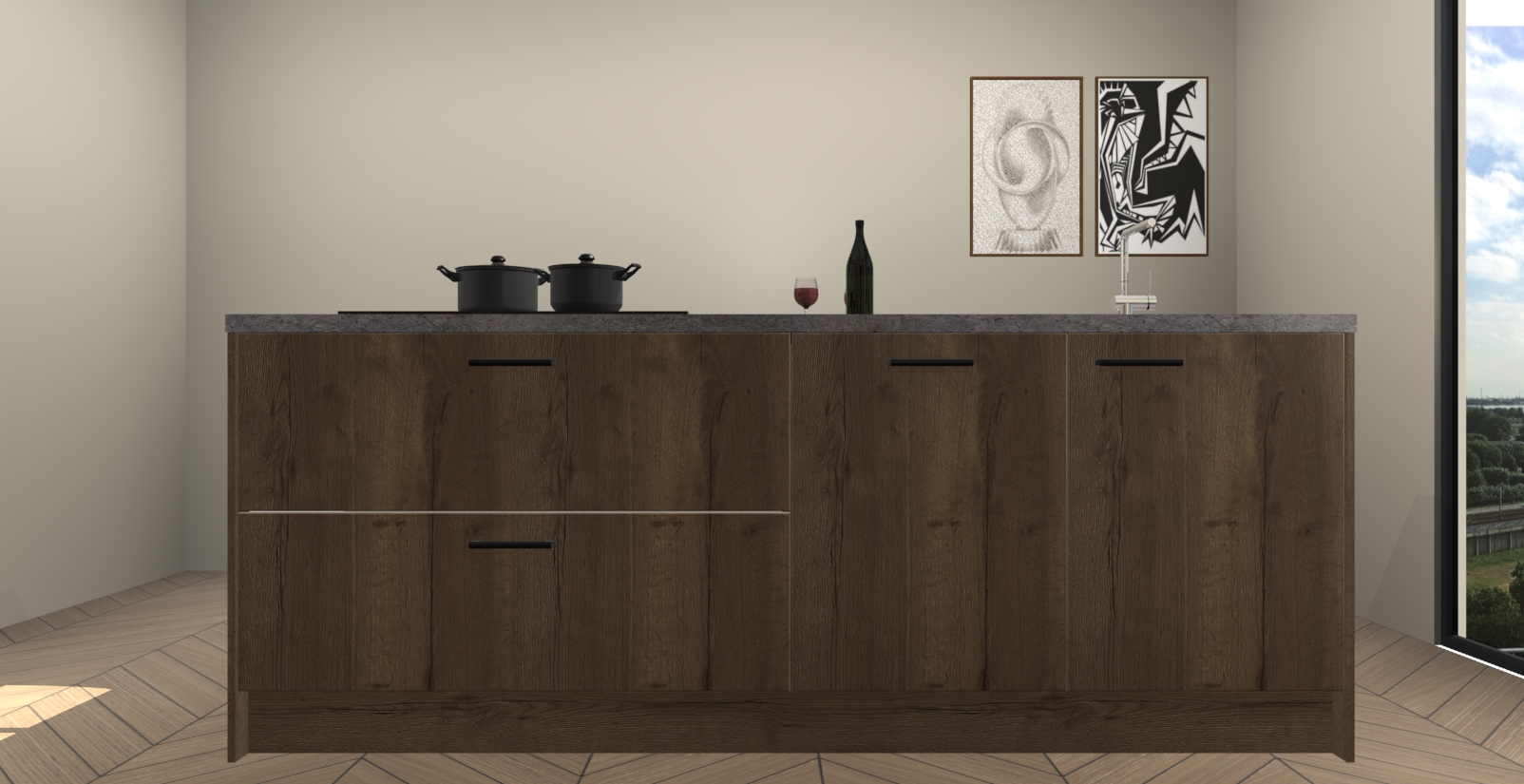 Breng luxe in uw keuken met de Chocolade Eiken Rusiec Keuken! Dit prachtige kookeiland straalt elegantie uit en laat elke ruimte er modern en verfijnd uitzien. De strakke Chocolade Eiken kleur geeft uw keuken een gevoel van sfeer en verfijning dat u bij andere stijlen niet krijgt.