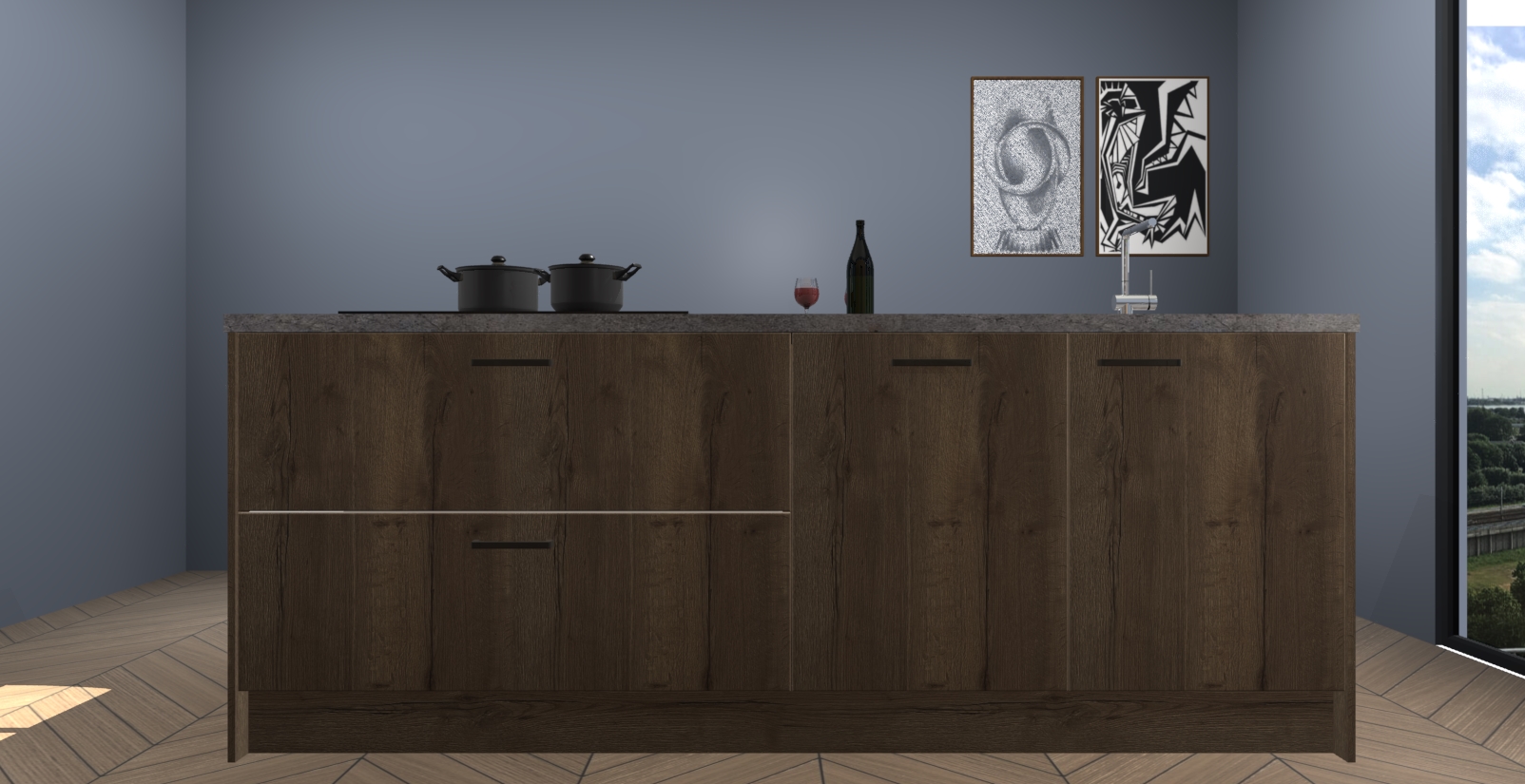 Breng luxe in uw keuken met de Chocolade Eiken Rusiec Keuken! Dit prachtige kookeiland straalt elegantie uit en laat elke ruimte er modern en verfijnd uitzien. De strakke Chocolade Eiken kleur geeft uw keuken een gevoel van sfeer en verfijning dat u bij andere stijlen niet krijgt.
