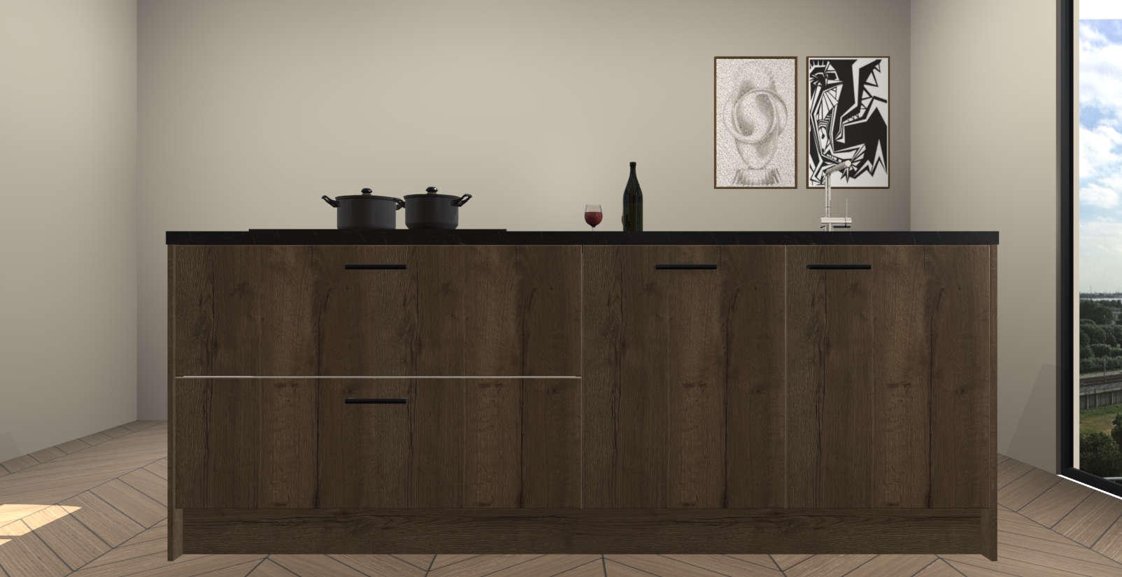 Breng luxe in uw keuken met de Chocolade Eiken Rusiec Keuken! Dit prachtige kookeiland straalt elegantie uit en laat elke ruimte er modern en verfijnd uitzien. De strakke Chocolade Eiken kleur geeft uw keuken een gevoel van sfeer en verfijning dat u bij andere stijlen niet krijgt.