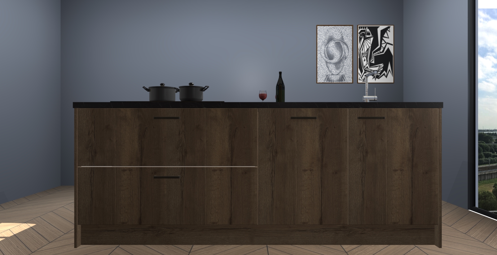 Breng luxe in uw keuken met de Chocolade Eiken Rusiec Keuken! Dit prachtige kookeiland straalt elegantie uit en laat elke ruimte er modern en verfijnd uitzien. De strakke Chocolade Eiken kleur geeft uw keuken een gevoel van sfeer en verfijning dat u bij andere stijlen niet krijgt.