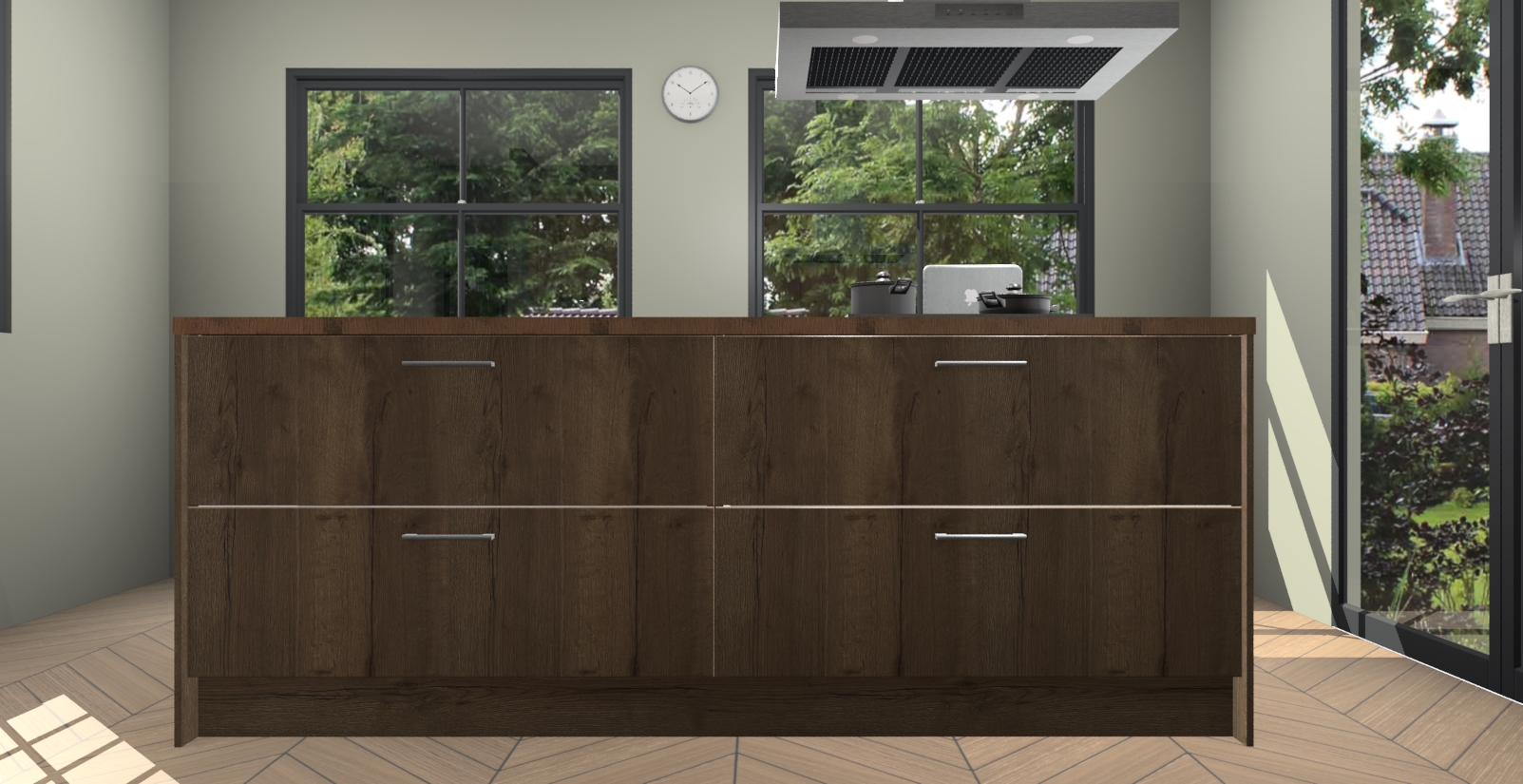 Maak kennis met de nieuwe Chocolade Eiken keuken Straatsburg, dat gemaakt is voor de moderne huiseigenaar. Deze chique en eigentijdse keuken geeft uw huis een instant upgrade. Het Chocolade Eiken ontwerp creëert de perfecte balans tussen elegantie en functionaliteit en geeft uw ruimte een strakke, uitnodigende sfeer. Het spoeleiland geeft ruime opbergruimte en met de soft-close deuren is deze keuken perfect voor elk huis.