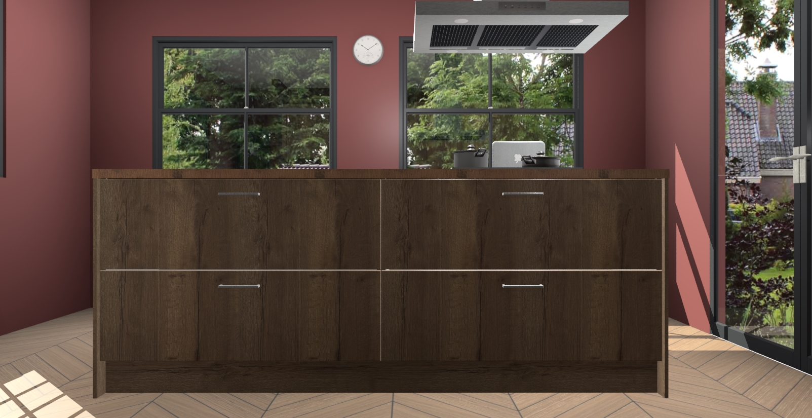 Maak kennis met de nieuwe Chocolade Eiken keuken Straatsburg, dat gemaakt is voor de moderne huiseigenaar. Deze chique en eigentijdse keuken geeft uw huis een instant upgrade. Het Chocolade Eiken ontwerp creëert de perfecte balans tussen elegantie en functionaliteit en geeft uw ruimte een strakke, uitnodigende sfeer. Het spoeleiland geeft ruime opbergruimte en met de soft-close deuren is deze keuken perfect voor elk huis.