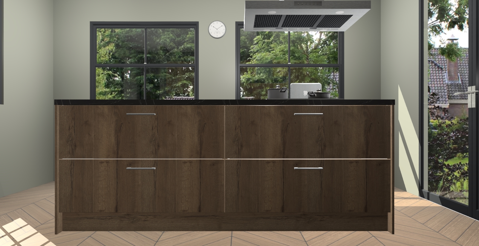 Maak kennis met de nieuwe Chocolade Eiken keuken Straatsburg, dat gemaakt is voor de moderne huiseigenaar. Deze chique en eigentijdse keuken geeft uw huis een instant upgrade. Het Chocolade Eiken ontwerp creëert de perfecte balans tussen elegantie en functionaliteit en geeft uw ruimte een strakke, uitnodigende sfeer. Het spoeleiland geeft ruime opbergruimte en met de soft-close deuren is deze keuken perfect voor elk huis.