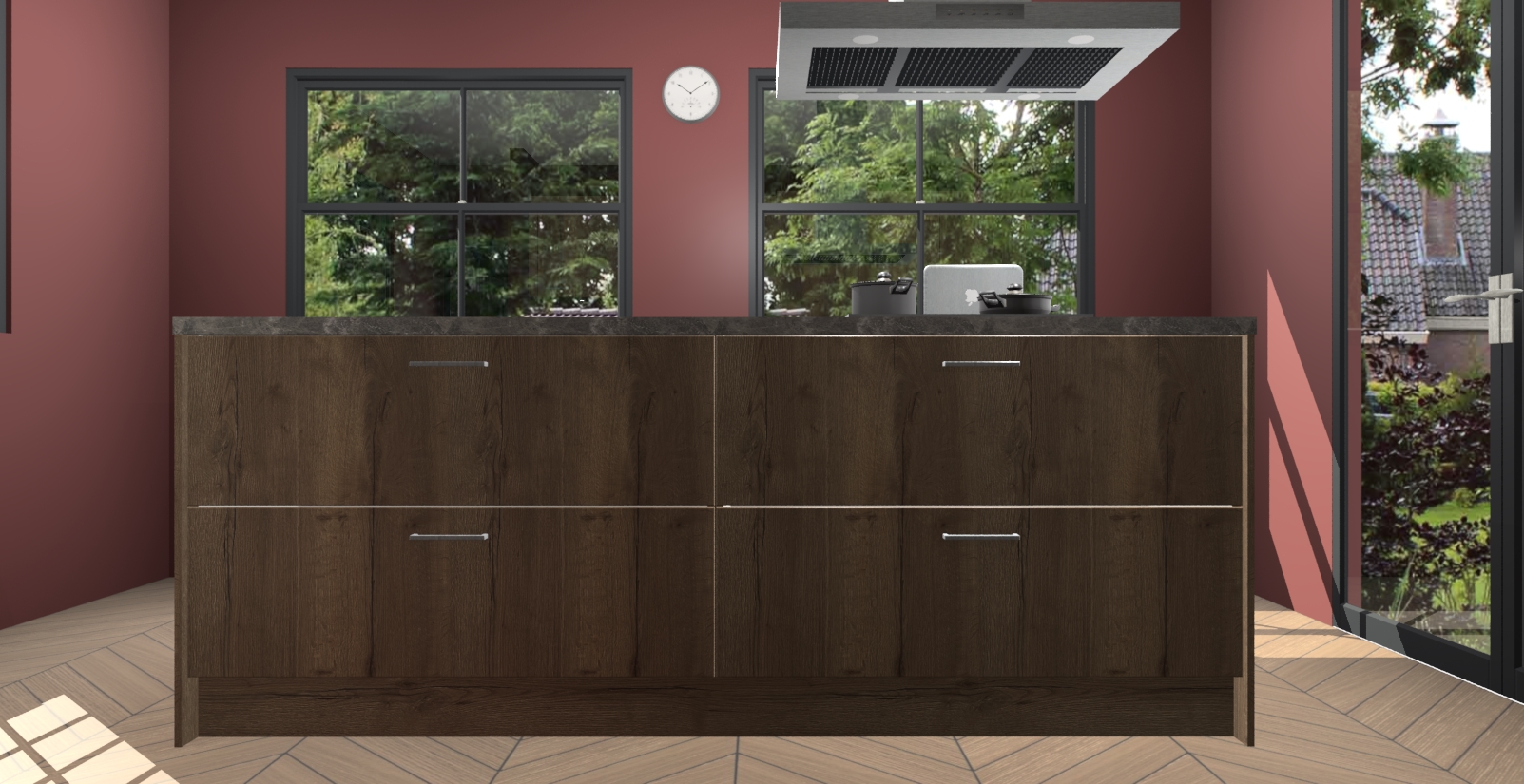 Maak kennis met de nieuwe Chocolade Eiken keuken Straatsburg, dat gemaakt is voor de moderne huiseigenaar. Deze chique en eigentijdse keuken geeft uw huis een instant upgrade. Het Chocolade Eiken ontwerp creëert de perfecte balans tussen elegantie en functionaliteit en geeft uw ruimte een strakke, uitnodigende sfeer. Het spoeleiland geeft ruime opbergruimte en met de soft-close deuren is deze keuken  perfect voor elk huis.