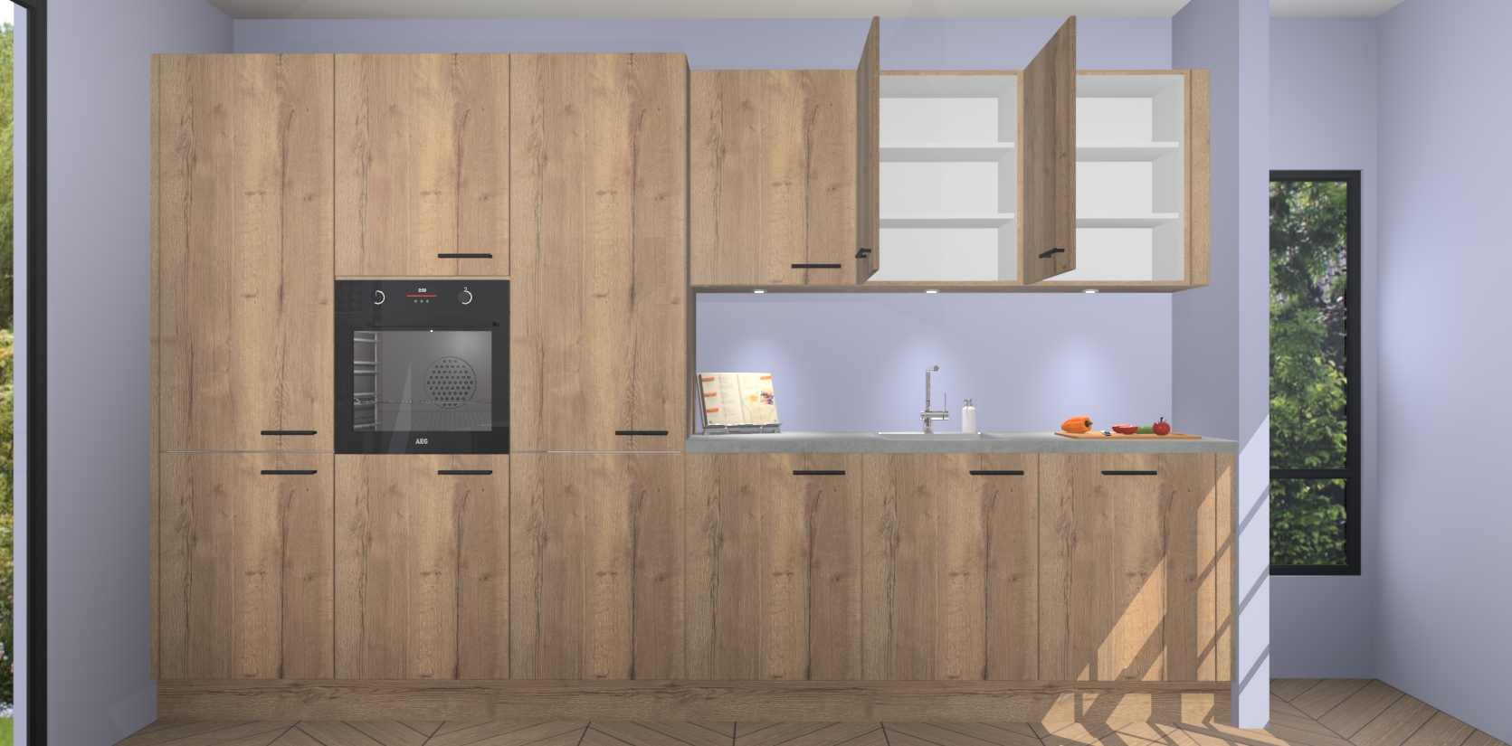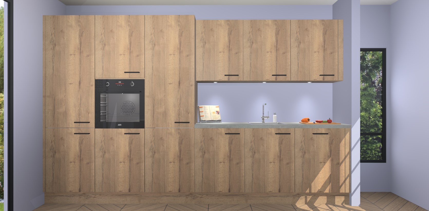 Maak kennis met de nieuwe Chocolade Eiken keuken Straatsburg, dat gemaakt is voor de moderne huiseigenaar. Deze chique en eigentijdse keuken geeft uw huis een instant upgrade. Het Chocolade Eiken ontwerp creëert de perfecte balans tussen elegantie en functionaliteit en geeft uw ruimte een strakke, uitnodigende sfeer. Het spoeleiland geeft ruime opbergruimte en met de soft-close deuren is deze keuken perfect voor elk huis.