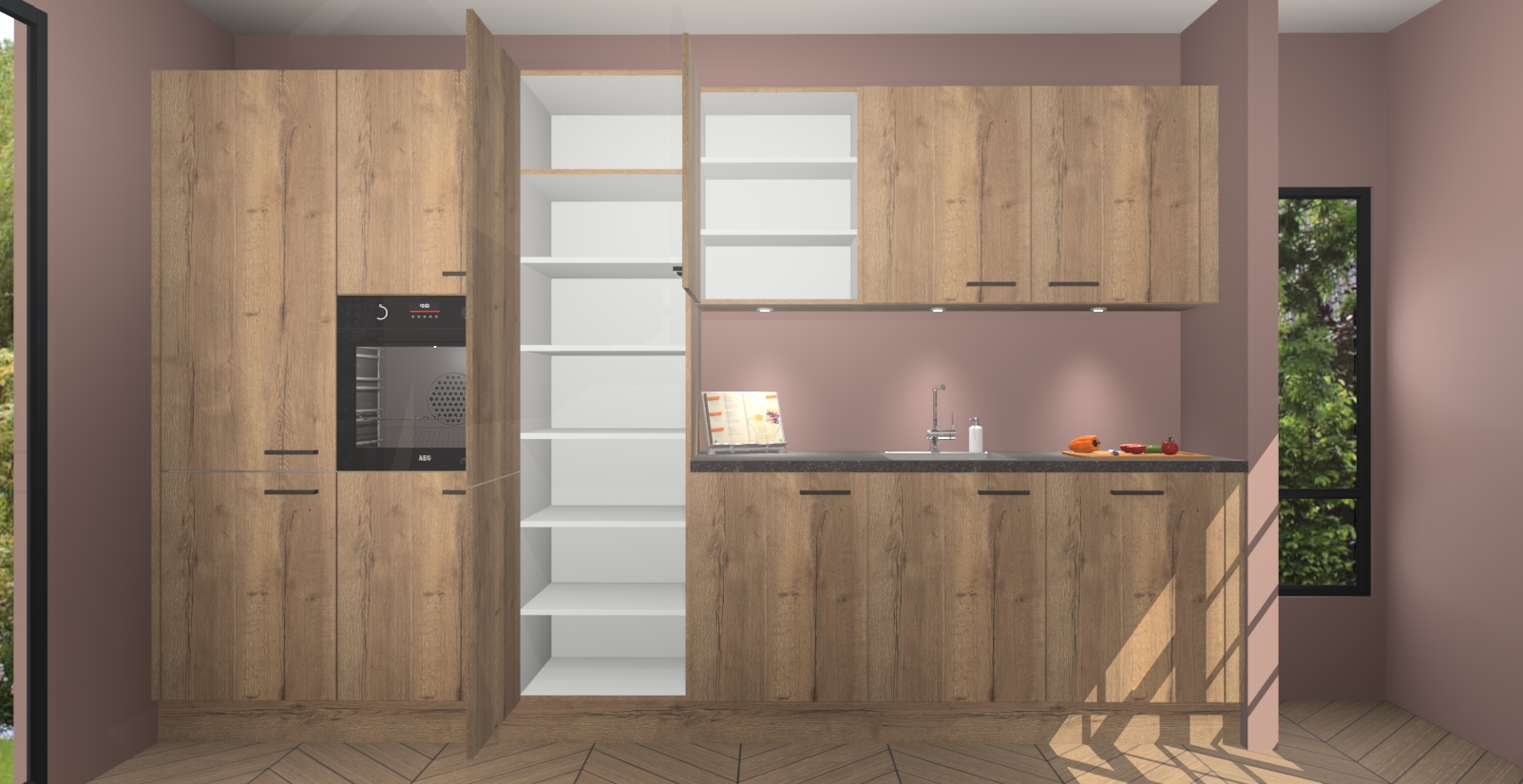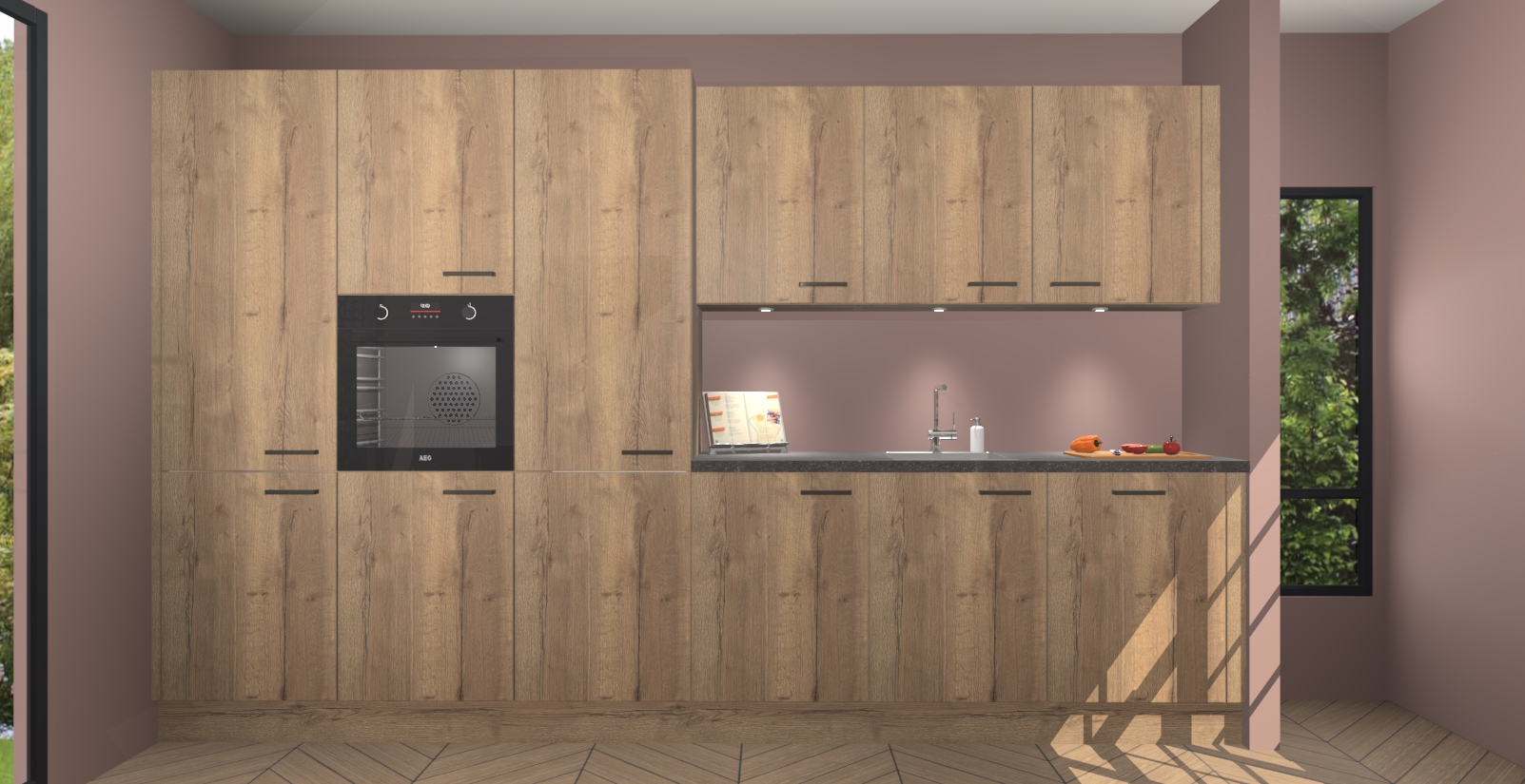 Maak kennis met de nieuwe Chocolade Eiken keuken Straatsburg, dat gemaakt is voor de moderne huiseigenaar. Deze chique en eigentijdse keuken geeft uw huis een instant upgrade. Het Chocolade Eiken ontwerp creëert de perfecte balans tussen elegantie en functionaliteit en geeft uw ruimte een strakke, uitnodigende sfeer. Het spoeleiland geeft ruime opbergruimte en met de soft-close deuren is deze keuken perfect voor elk huis.