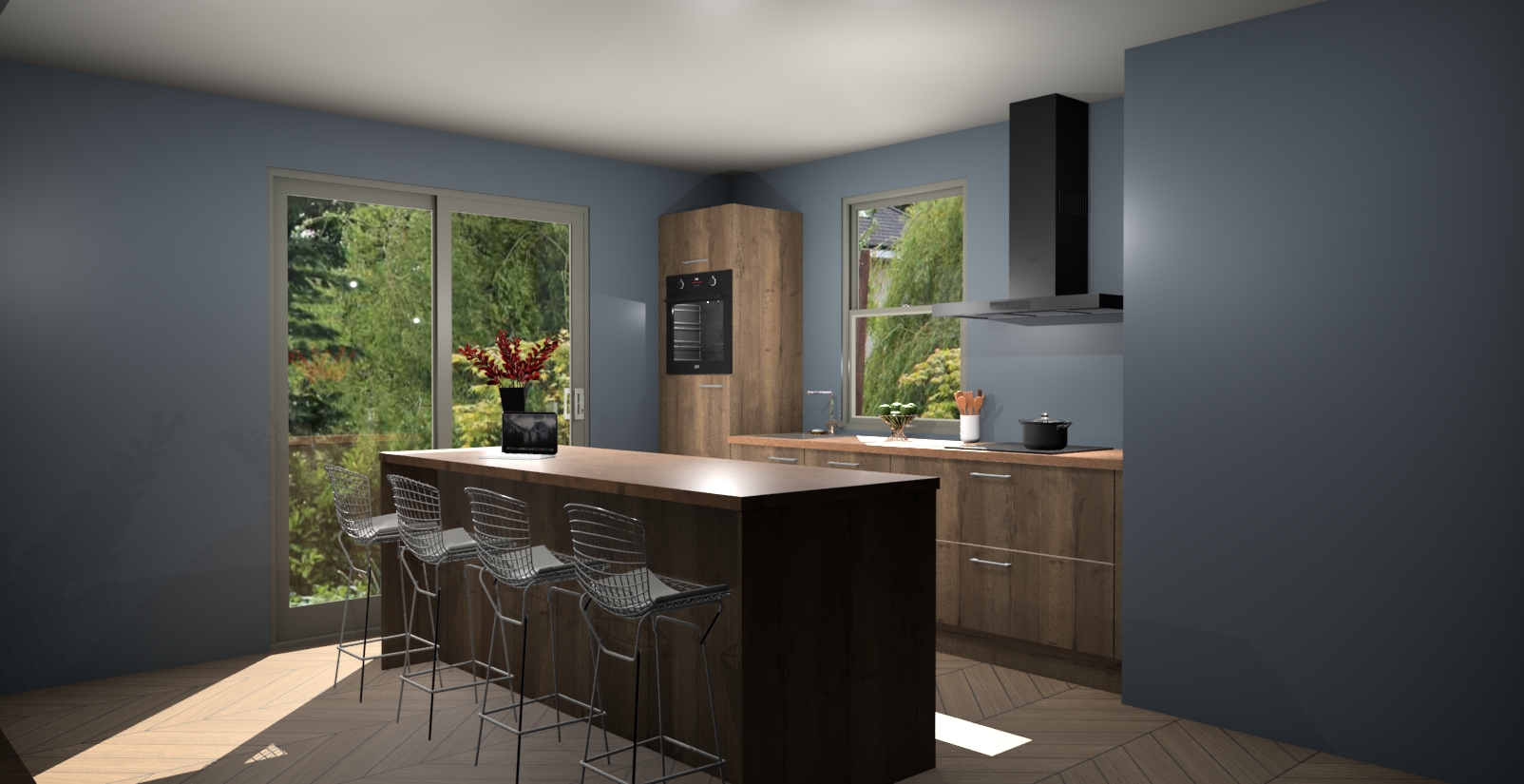 Een stijlvolle en praktische keuken als deze mag gezien worden. Dankzij de prachtige Chocolade Eiken afwerking wordt de keuken gemakkelijk het middelpunt van uw huis - hij ziet er geweldig uit onder allerlei lichtomstandigheden, van dag tot nacht!