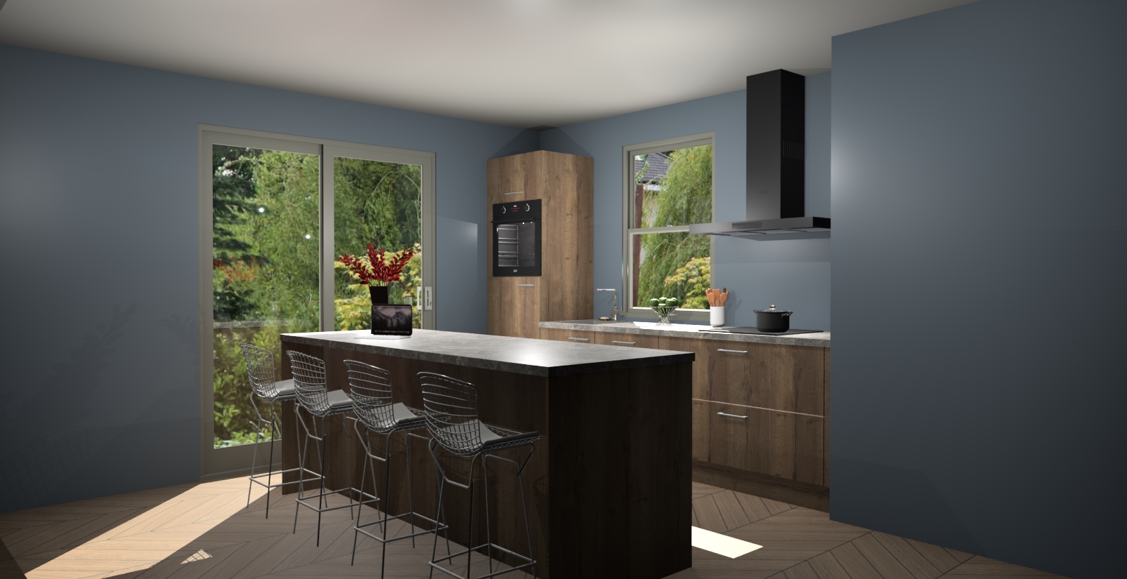 Een stijlvolle en praktische keuken als deze mag gezien worden. Dankzij de prachtige Chocolade Eiken afwerking wordt de keuken gemakkelijk het middelpunt van uw huis - hij ziet er geweldig uit onder allerlei lichtomstandigheden, van dag tot nacht!
