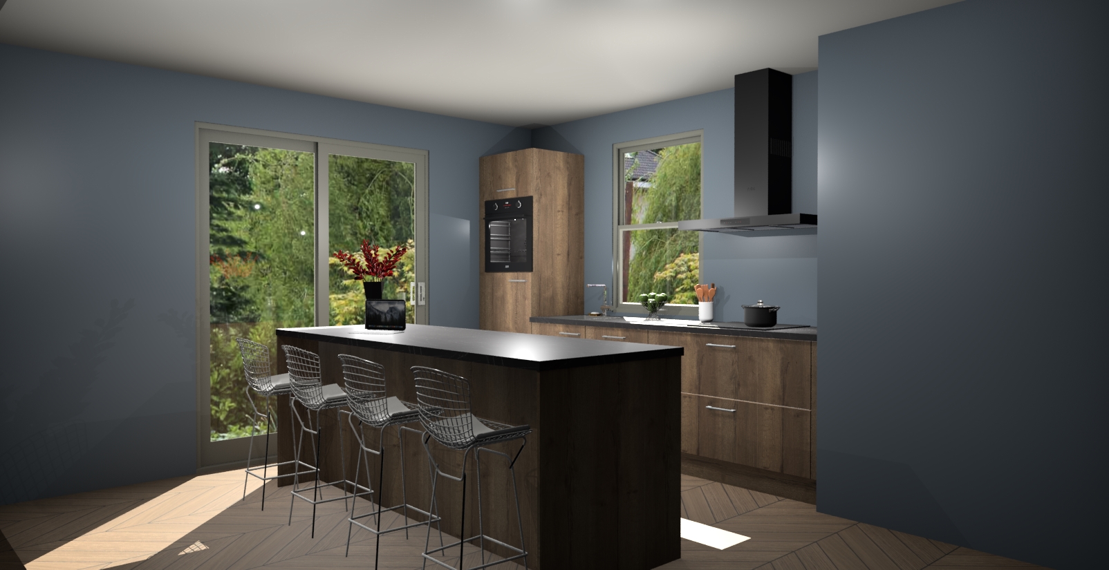 Een stijlvolle en praktische keuken als deze mag gezien worden. Dankzij de prachtige Chocolade Eiken afwerking wordt de keuken gemakkelijk het middelpunt van uw huis - hij ziet er geweldig uit onder allerlei lichtomstandigheden, van dag tot nacht!