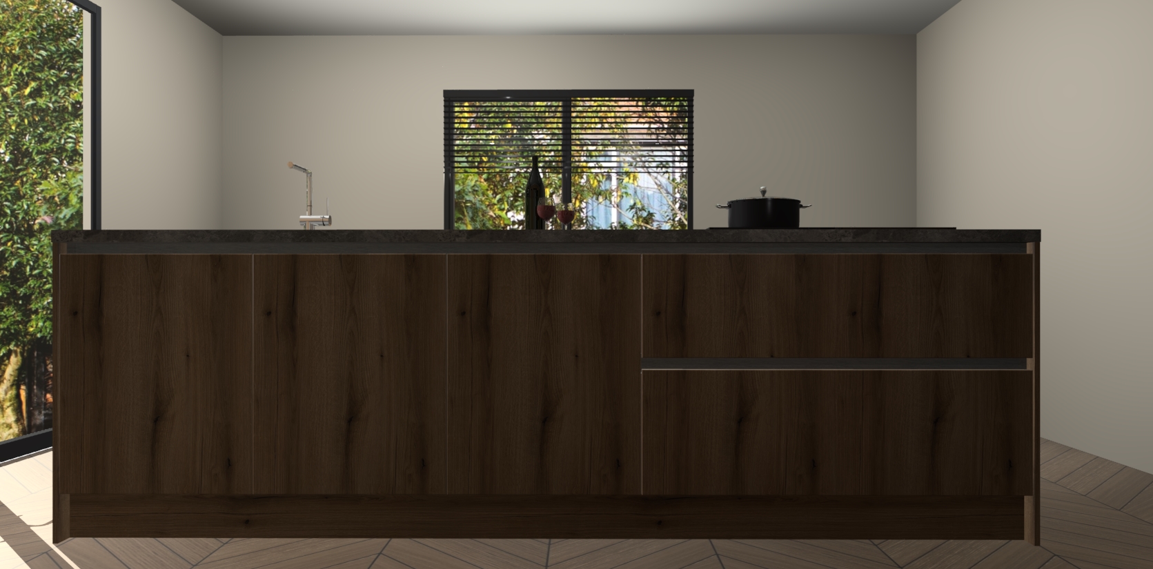 Inclusief plinten, stelpoten en werkblad