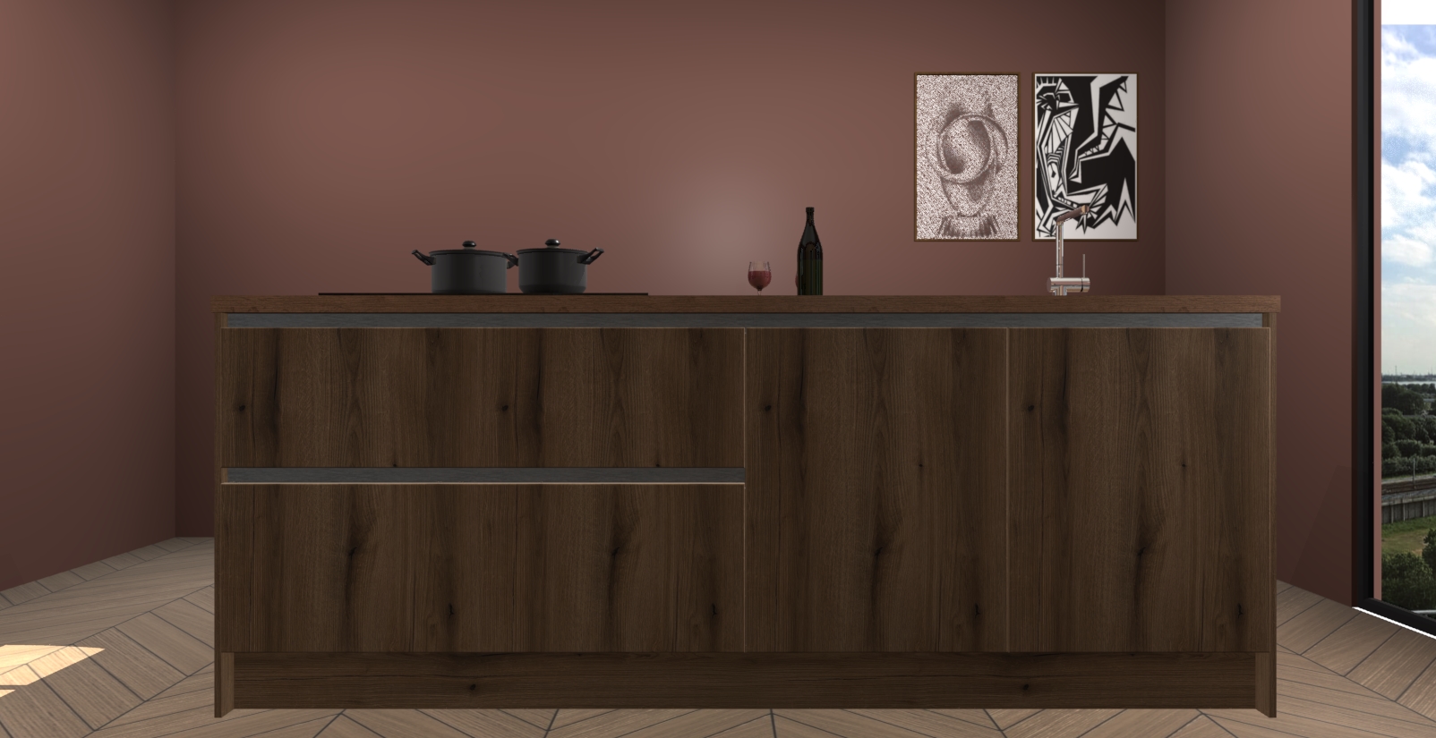 Breng luxe in uw keuken met de Goud Eiken greeploze Rusiec Keuken! Dit prachtige kookeiland straalt elegantie uit en laat elke ruimte er modern en verfijnd uitzien. De strakke Goud Eiken kleur geeft uw keuken een gevoel van sfeer en verfijning dat u bij andere stijlen niet krijgt.