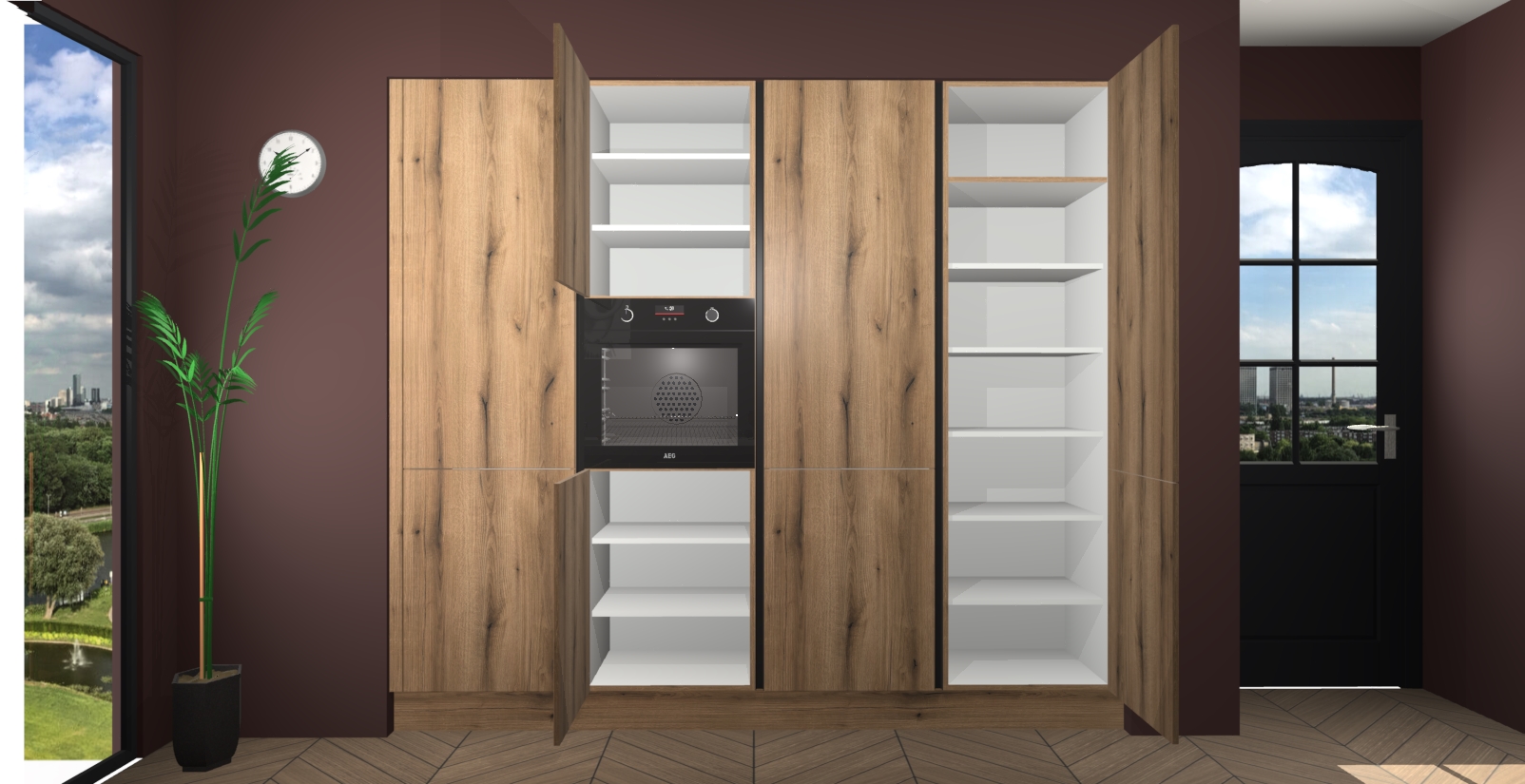Dankzij de vele opbergruimte wordt praktisch elke centimeter van uw keuken optimaal benut, wat de ruimte een opgeruimde en sfeervolle uitstraling geeft. Bovendien zijn we er trots op dat we een snelle levering van 7 weken en een vaste lage prijs kunnen bieden, zodat u deze prachtige keuken in een mum van tijd in huis hebt!