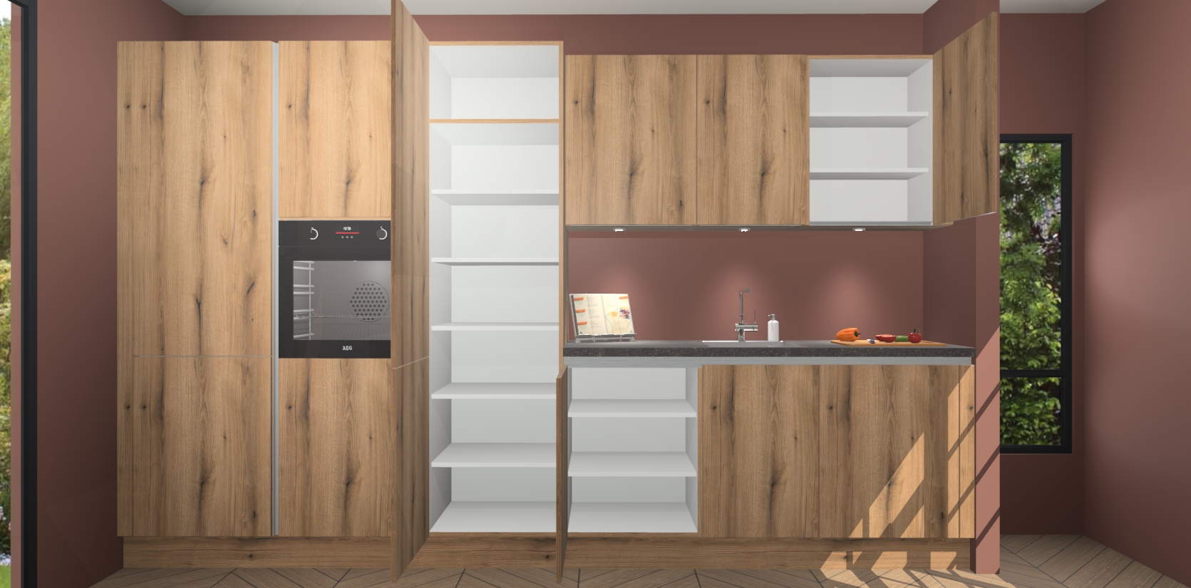 Maak kennis met de nieuwe Goud Eiken greeploze keuken Straatsburg, dat gemaakt is voor de moderne huiseigenaar. Deze chique en eigentijdse keuken geeft uw huis een instant upgrade. Het Goud Eiken greeploze ontwerp creëert de perfecte balans tussen elegantie en functionaliteit en geeft uw ruimte een strakke, uitnodigende sfeer. Het spoeleiland geeft ruime opbergruimte en met de soft-close deuren is deze keuken perfect voor elk huis.
